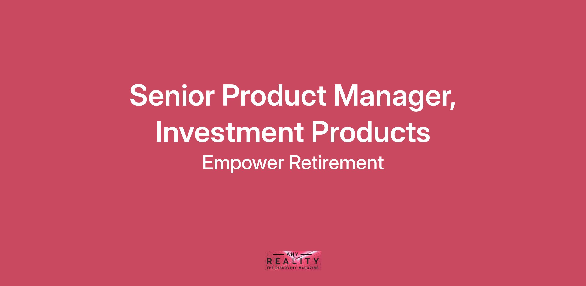 Our vision for the future is based on the idea that transforming financial lives starts by giving our people the freedom to transform their own. We have a flexible work environment, and fluid career paths. We not only encourage but celebrate internal mobility. We also recognize the importance of purpose, well-being, and work-life balance. Within Empower and our communities, we work hard to create a welcoming and inclusive environment, and our associates dedicate thousands of hours to volunteering for causes that matter most to them.Chart your own path and grow your career while helping more customers achieve financial freedom. Empower Yourself.As a Senior Product Manager on our Investment Products team, you will create an experience that redefines what consumers expect in financial services, launching new and enhancing existing investment products that give consumers the confidence and trust to achieve their short-term and long-term financial goals. This talented individual has a strong track record in product management and someone that brings creativity and humility, product sense and analytical skill, leadership, and ability to collaborate. You will be responsible for setting the vision, identifying opportunities and key inputs, setting goals, defining client experiences, leading the launch of new investment products, and delivering featuresWhat you will doDefine a product strategy that identifies opportunities that will have the biggest consumer impact, helping our end customers achieve their financial goals.Own the product roadmap, including both significant short and long-term opportunities for your product and in the context of the broader organizational strategy and goals.Obsess about the product design, partnering closely with designers to constantly look for opportunities to simplify and deliver a better experience.Leverage customer research, usability testing, and market research in your strategy to improve likelihood of success and user satisfaction.Partner closely with engineering and design to increase team velocity, cohesiveness, and productivity.Define, analyze, and track key performance metrics.Drive decision making through customer insights, agile methods to validate hypothesis, quantitative analysis, and A/B testing. Execute at a fast pace with a focus on customer outcomes, the user experience, and learning with limited oversight.What you will bring7+ years of experience leading major (digital) direct-to-consumer products and working collaboratively with engineering, design, and research teams.Excellent communication skills, storytelling, and organizational skills that instill confidence in senior leaders, cross-functional partners, and peers.Relentless follow through and commitment to do the right thing and do what you say.Detail and design oriented; the details really matter to you.Passionate about tackling complicated and impactful customer and business problems.Critical, analytical thinker and comfortable analyzing data and pulling out key insights.Bachelor's degree or equivalent experience; MBA is a plus.What will set you apart?Proven track record of navigating through the full product life cycle, integrating customer feedback in requirements, driving prioritization, and pre/post-launch execution.Experience in the fintech industry with demonstrable knowledge of industry best practices.Critical, analytical thinker and comfortable analyzing data and pulling out key insights.Experience with aggregation and aggregation service providers.***Applicants must be authorized to work for any employer in the U.S. We are unable to sponsor or take over sponsorship of an employment visa at this time, including CPT/OPT.***What we offer youWe offer an array of diverse and inclusive benefits regardless of where you are in your career. We believe that providing our employees with the means to lead healthy balanced lives results in the best possible work performance.Medical, dental, vision and life insuranceRetirement savings – 401(k) plan with generous company matching contributions (up to 6%), financial advisory services, potential company discretionary contribution, and a broad investment lineupTuition reimbursement up to $5,250/yearBusiness-casual environment that includes the option to wear jeansGenerous paid time off upon hire – including a paid time off program plus ten paid company holidays and three floating holidays each calendar yearPaid volunteer time — 16 hours per calendar yearLeave of absence programs – including paid parental leave, paid short- and long-term disability, and Family and Medical Leave (FMLA)Business Resource Groups (BRGs) – BRGs facilitate inclusion and collaboration across our business internally and throughout the communities where we live, work and play. BRGs are open to all.Base Salary Range$111,800.00 - $162,125.00The salary range above shows the typical minimum to maximum base salary range for this position in the location listed. Non-sales positions have the opportunity to participate in a bonus program. Sales positions are eligible for sales incentives, and in some instances a bonus plan, whereby total compensation may far exceed base salary depending on individual performance. Actual compensation offered may vary from posted hiring range based upon geographic location, work experience, education, licensure requirements and/or skill level and will be finalized at the time of offer.Equal opportunity employer • Drug-free workplaceWe are an equal opportunity employer with a commitment to diversity. All individuals, regardless of personal characteristics, are encouraged to apply. All qualified applicants will receive consideration for employment without regard to age (40 and over), race, color, national origin, ancestry, sex, sexual orientation, gender, gender identity, gender expression, marital status, pregnancy, religion, physical or mental disability, military or veteran status, genetic information, or any other status protected by ap