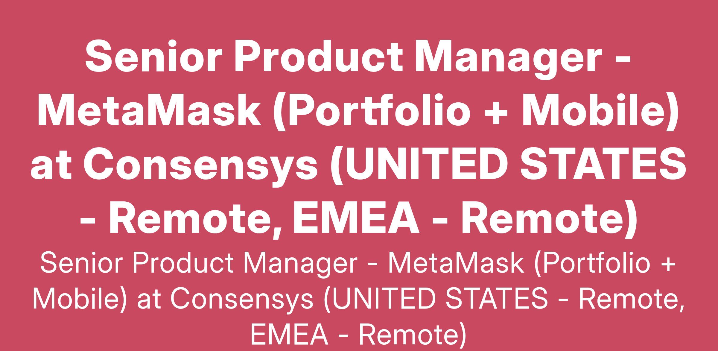 Senior Product Manager - MetaMask (Portfolio + Mobile) at Consensys (UNITED STATES - Remote, EMEA - Remote)