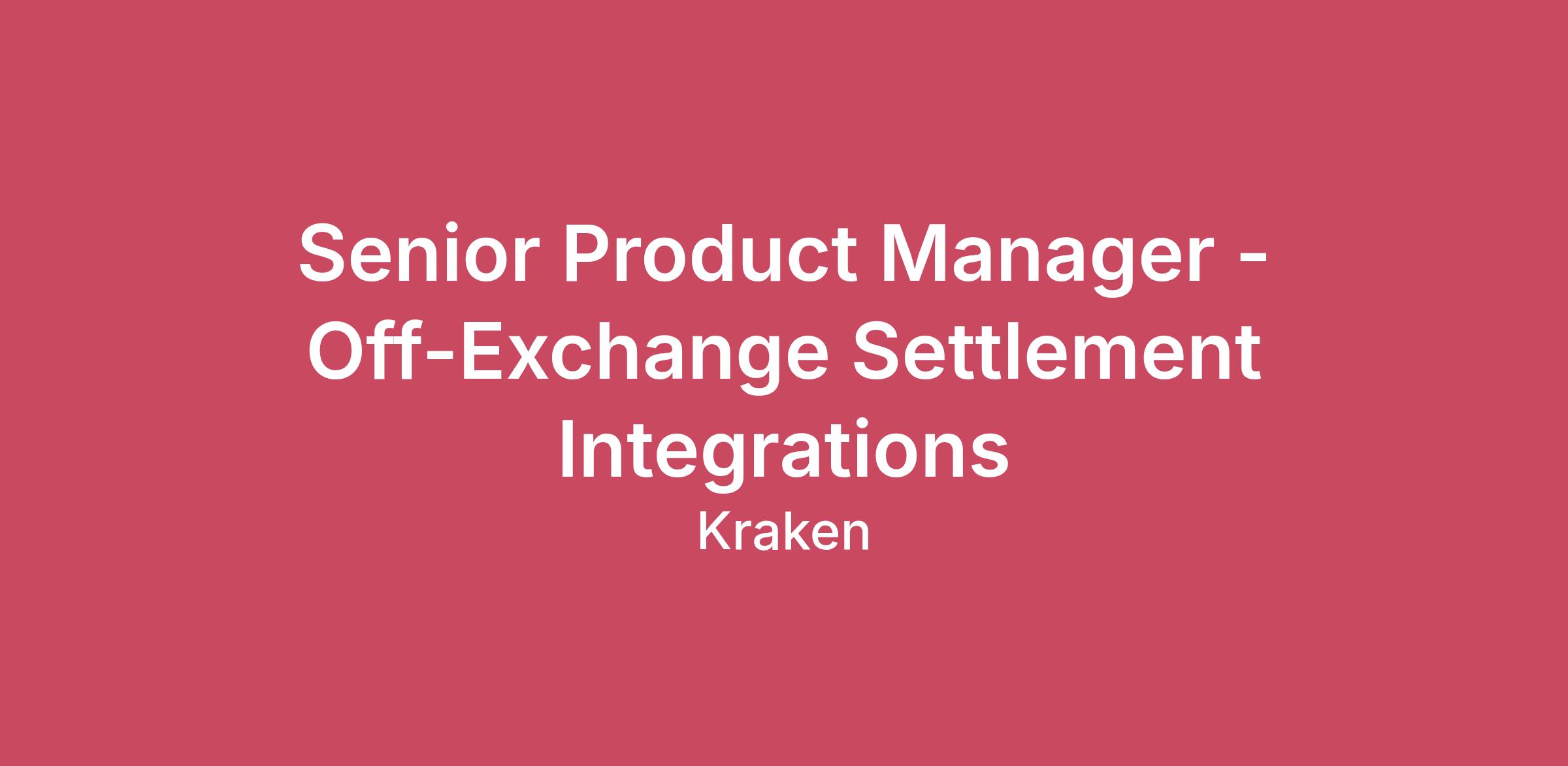 Building the Future of Crypto Our Krakenites are a world-class team with crypto conviction, united by our desire to discover and unlock the potential of crypto and blockchain technology.What makes us different? Kraken is a mission-focused company rooted in crypto values. As a Krakenite, you’ll join us on our mission to accelerate the global adoption of crypto, so that everyone can achieve financial freedom and inclusion. For over a decade, Kraken’s focus on our mission and crypto ethos has attracted many of the most talented crypto experts in the world.Before you apply, please read the Kraken Culture page to learn more about our internal culture, values, and mission. We also expect candidates to familiarize themselves with the Kraken app. Learn how to create a Kraken account here.As a fully remote company, we have Krakenites in 70+ countries who speak over 50 languages. Krakenites are industry pioneers who develop premium crypto products for experienced traders, institutions, and newcomers to the space. Kraken is committed to industry-leading security, crypto education, and world-class client support through our products like Kraken Pro, Desktop, Wallet, and Kraken Futures.Become a Krakenite and build the future of crypto!Proof of workThe teamKraken is seeking a Product Manager to lead Off-Exchange Settlement integrations for the Kraken Exchange. This role will own the product strategy, roadmap, and delivery of integrations with institutional settlement and custody providers such as ClearLoop, Fireblocks, and similar platforms.You will sit within the Exchange Product pod and work closely with Engineering, Legal, Finance, Risk, and external vendors to design and launch secure settlement connectivity that enables institutional clients to trade on Kraken while keeping assets with trusted custodians.This role requires strong product ownership, cross-functional coordination, and experience working with institutional trading infrastructure, custody solutions, or post-trade settlement systems.The opportunityOwn the product roadmap for off-exchange settlement integrations with third-party custody and settlement providers.Define product requirements and integration frameworks for platforms such as ClearLoop, Fireblocks, and similar institutional settlement solutions.Lead end-to-end delivery of integrations, from discovery and design through implementation and launch.Collaborate with Engineering teams within the Exchange pod to define technical specifications, APIs, workflows, and operational processes.Work closely with Legal, Finance, Compliance, and Risk teams to ensure integrations meet regulatory, contractual, and operational requirements.Coordinate with external partners and vendors to define integration scope, timelines, and technical requirements.Translate institutional client needs into scalable product capabilities that improve capital efficiency and trading access.Prioritize initiatives that improve institutional trading workflows, collateral management, and settlement efficiency.Skills you should HODL4+ years of Product Management experience, preferably in fintech, crypto, trading platforms, or financial infrastructure.Strong understanding of exchange infrastructure, custody, or post-trade settlement workflows.Experience working with institutional trading products or financial market infrastructure.Ability to work cross-functionally with engineering, legal, finance, compliance, and external partners.Experience managing API-based integrations with third-party providers.Strong organizational and stakeholder management skills.Ability to translate complex technical systems into clear product requirements and roadmaps.Nice to havesExperience with digital asset custody providers or settlement networks (Fireblocks, Copper, ClearLoop, etc.).Familiarity with prime brokerage, collateral management, or institutional trading workflows.Background in traditional financial markets infrastructure (clearing, settlement, custody).Experience launching institutional trading or capital efficiency products.Unless a specific application deadline is stated in the job posting, applications are accepted on an ongoing basis.Please note, applicants are permitted to redact or remove information on their resume that identifies age, date of birth, or dates of attendance at or graduation from an educational institution.We consider qualified applicants with criminal histories for employment on our team, assessing candidates in a manner consistent with the requirements of the San Francisco Fair Chance Ordinance.Kraken is powered by people from around the world and we celebrate all Krakenites for their diverse talents, backgrounds, contributions and unique perspectives. We hire strictly based on merit, meaning we seek out the candidates with the right abilities, knowledge, and skills considered the most suitable for the job. We encourage you to apply for roles where you don't fully meet the listed requirements, especially if you're passionate or knowledgable about crypto!We may ask candidates to complete job-related skills or work-style assessments as part of our hiring process. These assessments are designed to evaluate competencies relevant to the role and are applied consistently across candidates for similar positions. Assessment results are considered alongside other relevant information, such as experience and interviews, and are not the sole basis for any employment decision.As an equal opportunity employer, we don’t tolerate discrimination or harassment of any kind. Whether that’s based on race, ethnicity, age, gender identity, citizenship, religion, sexual orientation, disability, pregnancy, veteran status or any other protected characteristic as outlined by federal, state or local laws. Stay in the knowFollow us on TwitterLearn on the Kraken BlogConnect on LinkedInCandidate Privacy Notice
