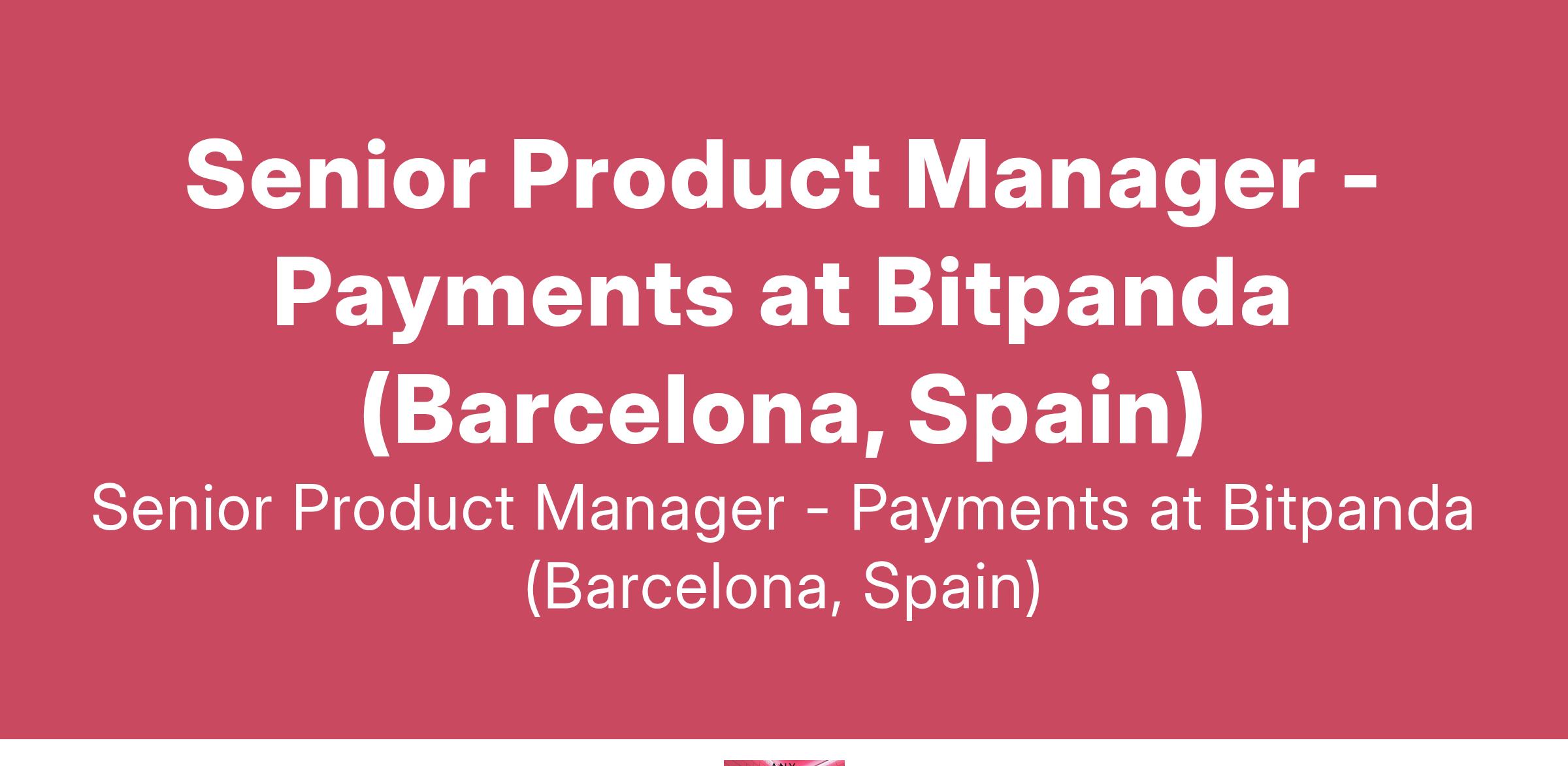 Senior Product Manager - Payments at Bitpanda (Barcelona, Spain)