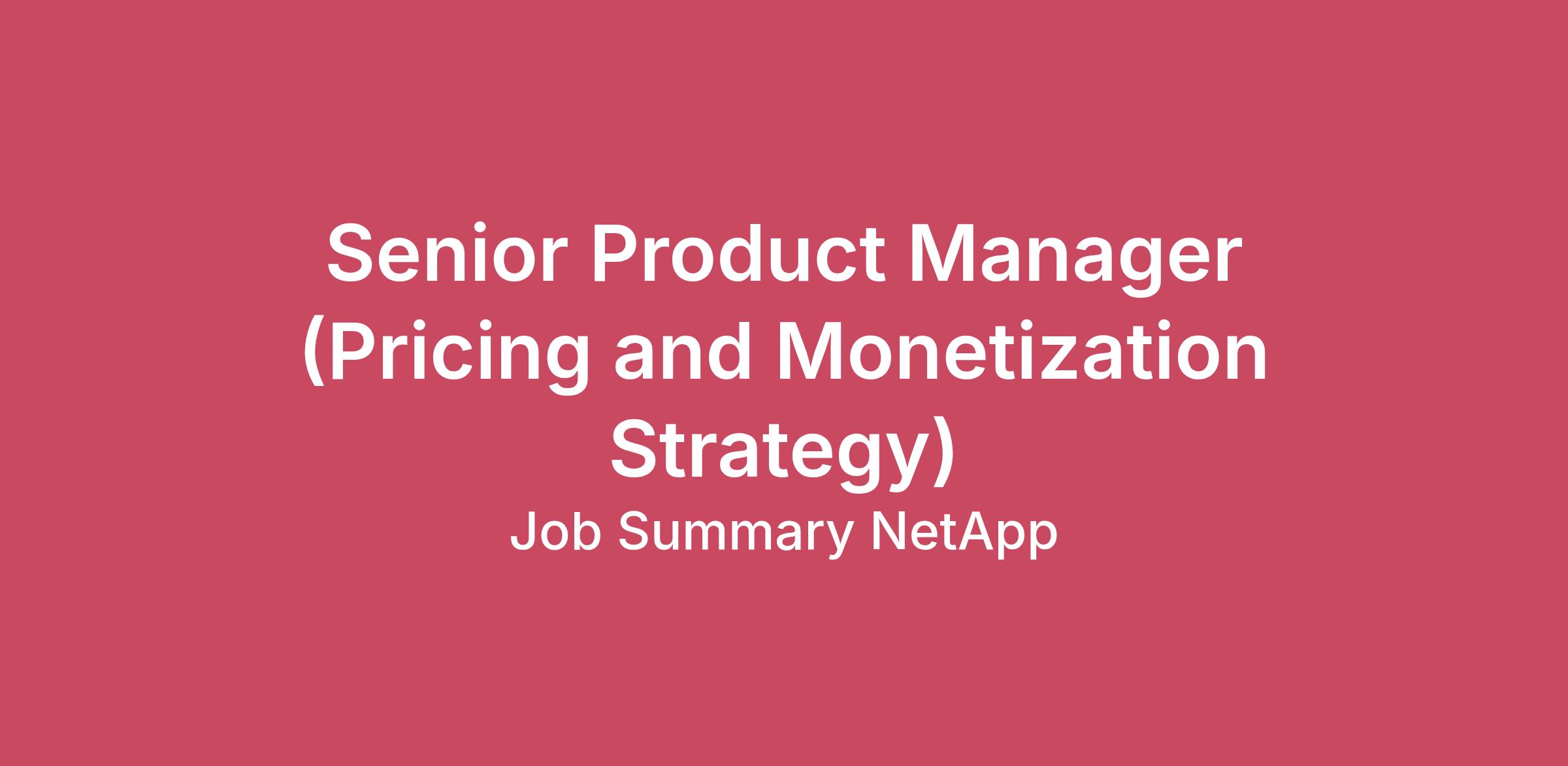 Job Summary NetApp is seeking an experienced and results-driven Senior Product Manager, Monetization to join our dynamic Cloud Storage & Services Business Unit. In this role, you’ll have the unique opportunity to shape impactful monetization strategies that drive business success while maintaining alignment with long-term strategic objectives. By collaborating effectively with cross-functional teams, you’ll lead initiatives from inception to execution with a focus on delivering measurable results. Responsibilities To be successful in this highly visible role, you should be able to work in a dynamic environment, think big, and be comfortable navigating complexity and ambiguity. You should have strong business and communication skills, be comfortable analyzing data to provide data-driven recommendations, and be able to partner with stakeholders to help define key business questions and build solutions that answer them. Drive the end-to-end execution of product initiatives by partnering with cross-functional teams (engineering, operations, marketing, sales and customer success) to ensure seamless rollout of new models, feature bundles, and market offers Develop product enhancements and packaging options that elevate the customer value proposition and resonate with target enterprise segment Qualifications 5+ years leading integrated Hardware & Software products strategy, including release management, field-reliability feedback, and compliance/readiness for enterprise customers aligning organizational priorities and the needs of customers. 3+ years driving multi-year product transformations for technical products (platform modernization, cloud/hyperscaler migrations, or pricing model shifts etc.) with operating-model design, OKRs & KPI governance, and executive stakeholder alignment. Experience working directly with hyperscalers to leverage co-marketing strategies and deploy advanced AI/ML solutions. Experience applying AI based solutions to conduct user interviews, run experiments, simplify customer experience and define innovative monetization/growth strategy 2 years of post-MBA experience owning the creation and implementation of long-term product strategies with an engineering background Expertise in owning and driving roadmap strategy, definition, and execution. Demonstrated ability to lead end-to-end product delivery processes effectively Experience in the cloud storage and services industry is preferred Advanced analytical skills with the ability to dive into product usage data and experiment results. Familiarity with data analysis tools (e.g., Python, Excel) and experience with statistical analysis and A/B testing frameworks is a must Education Bachelor's degree in Engineering with a STEM focused MBA preferred. Compensation: The target salary range for this position is 154,700 - 231,000 USD. The salary offered will be determined by the candidate's location, qualifications, experience, and education and may be outside of this range. The range is based on 'On Target Earnings’ (OTE) representing the total potential earnings, which is the sum of the base salary and potential commission earned when performance targets are achieved. Final compensation packages are competitive and in line with industry standards, reflecting a variety of factors, and include a comprehensive benefits package. This may cover Health Insurance, Life Insurance, Retirement or Pension Plans, Paid Time Off (PTO), various Leave options, employee stock purchase plan, and/or restricted stocks (RSU’s). These offerings are subject to regional variations and governed by local laws, regulations, and company policies. We will provide detailed information about the specific benefits for your region during the recruitment process.