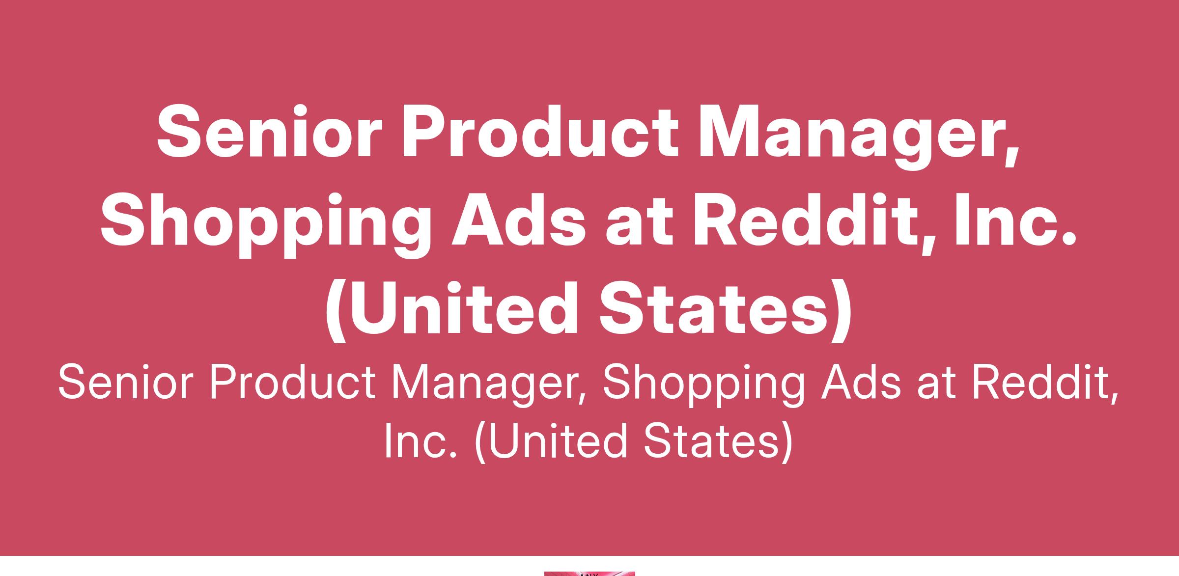Senior Product Manager, Shopping Ads at Reddit, Inc. (United States)