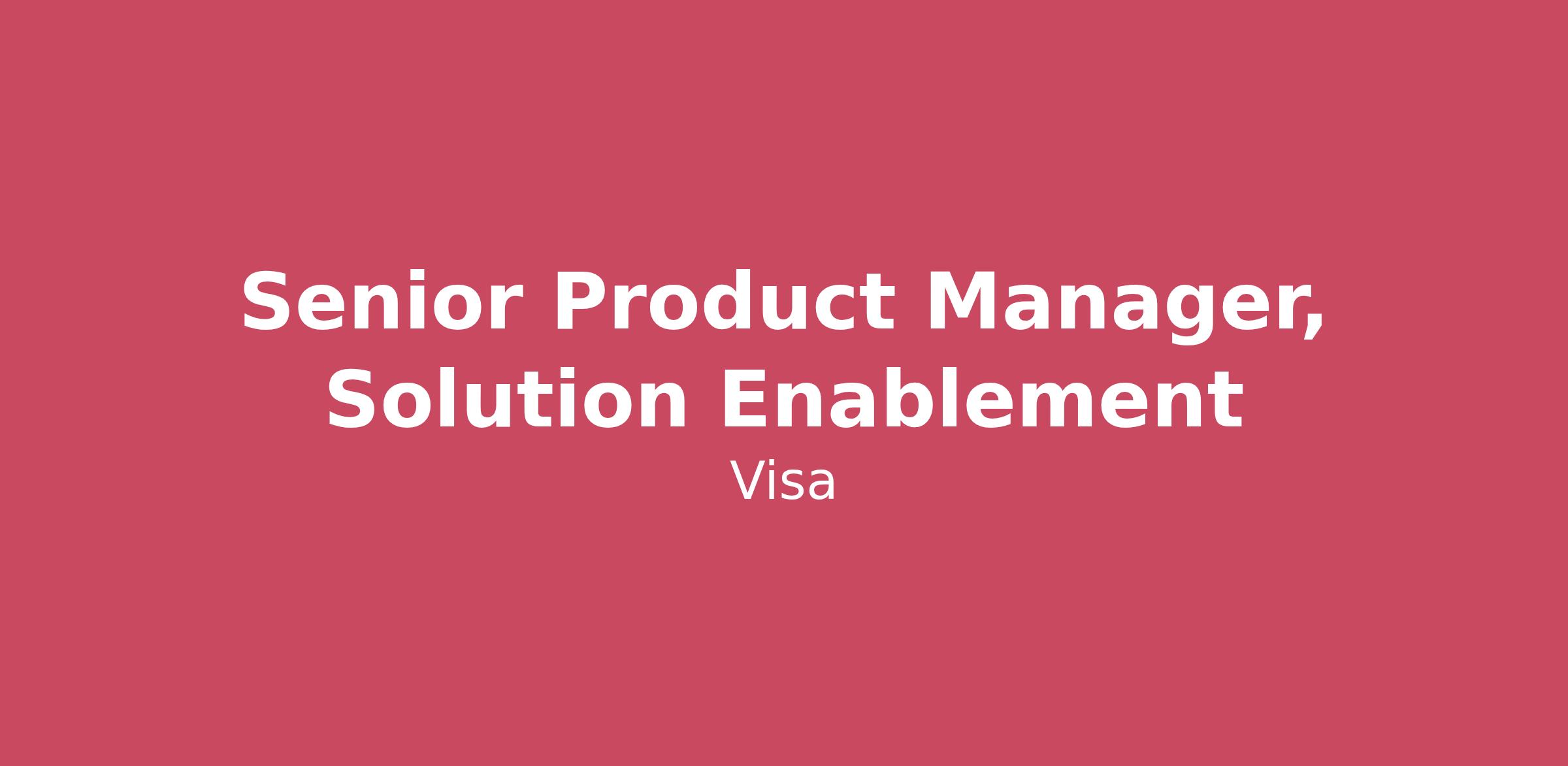 Company DescriptionVisa is a world leader in payments technology, facilitating transactions between consumers, merchants, financial institutions and government entities across more than 200 countries and territories, dedicated to uplifting everyone, everywhere by being the best way to pay and be paid.At Visa, you'll have the opportunity to create impact at scale — tackling meaningful challenges, growing your skills and seeing your contributions impact lives around the world. Join Visa and do work that matters — to you, to your community, and to the world.Progress starts with you.Job DescriptionFlex and Installments are key for modernizing credential capability enabling new income streams new entrants for faster distribution and accomplishing top of wallet status for issuers. This SPM will help drive global change to support market initiatives delivering consistently to unlock new payment volume aligned to strategic growth imperatives. This individual will work closely with various teams across Product Development, Strategy, GTM, Data Technology, Finance, Regions, Rules, Risk and more to define and deliver accelerated sales use cases and solutions in alignment with growth levers. The team supports alignment and provides narrative, tooling and executional streamlining across all of Visas 5 regions directly owning leading and executing key cross functional initiatives that are top management priorities.This role is global and will need to balance regional and global opportunities to achieve overall solution and platform objectives. Accomplishing this will require ability to influence and collaborate across a complex and highly matrixed organization and provide leadership and clear vision to direct and indirect teams.Key Responsibilities:Work cross-functionally to define and align on product roadmap and strategy.Define and document functional and technical requirements for new products and featuresCollaborate closely with engineering, architecture, UX design, data science, and risk teams to ensure scalable, secure, and compliant product deliveryChampion agile methodologies across cross-functional teams to deliver innovative solutions efficiently.Integrate risk, compliance, and security considerations into product development and lifecycle management.Establish KPIs and metrics for monitoring product performance and compliance.Support new product development, go-to-market planning, and global rollout coordination.Develop executive-level communications and materials for internal and external audiences.Work closely with regional product teams to ensure global strategies are actionable and locally relevant.Contribute to product planning, strategy cycles, and major internal or client-facing events.This is a hybrid position. Expectation of days in the office will be confirmed by your Hiring Manager. QualificationsBasic Qualifications:8 or more years of relevant work experience with a Bachelor Degree or at least 5 years of experience with an Advanced Degree (e.g. Masters, MBA, JD, MD) or 2 years of work experience with a PhDPreferred Qualifications:9 or more years of relevant work experience with a Bachelor Degree or 7 or more relevant years of experience with an Advanced Degree (e.g. Masters, MBA, JD, MD) or 3 or more years of experience with a PhDBachelor’s or master’s degree in a technical or engineering field such as industrial engineering, systems engineering, engineering management, computer science, software engineering, or product design6 + years of experience in product management, technology product development, or a related field.Experience and comfort adapting to work on different types of products (data, B2C, APIs)Experience leading and managing complex, cross-functional technical projects.Superior strategic thinking, analytical, and problem-solving skills, with demonstrated intellectual and analytical rigor and attention to detail.Strong technical literacy, ability to work closely with engineering and technical teams.Personal presence and ability to clearly communicate compelling messages to senior stakeholders and external business partners.Proactive self-starter, team oriented, collaborative, diplomatic, and adaptable, with excellent presentation skills, including strong oral and writing capabilities.Experience in and/or significant exposure to the payments, financial services, or technology sectors.Demonstrated ability to operate as an advanced user of AI‑enabled tools and agent‑based workflows, using them routinely to drive faster, higher‑quality outputs such as agents, tools, designs and artifacts, more effective planning and process, and clearer reporting.Additional InformationWork Hours: Varies upon the needs of the department.Travel Requirements: This position requires travel 5-10% of the time.Mental/Physical Requirements: This position will be performed in an office setting. The position will require the incumbent to sit and stand at a desk, communicate in person and by telephone, frequently operate standard office equipment, such as telephones and computers.Visa is an EEO Employer. Qualified applicants will receive consideration for employment without regard to race, color, religion, sex, national origin, sexual orientation, gender identity, disability or protected veteran status. Visa will also consider for employment qualified applicants with criminal histories in a manner consistent with EEOC guidelines and applicable local law.Visa will consider for employment qualified applicants with criminal histories in a manner consistent with applicable local law, including the requirements of Article 49 of the San Francisco Police Code.U.S. APPLICANTS ONLY: The estimated salary range for this position is 169,100.00 to 270,800.00 USD per year, which may include potential sales incentive payments (if applicable). Salary may vary depending on job-related factors which may include knowledge, skills, experience, and location. In addition, this position may be eligible for 