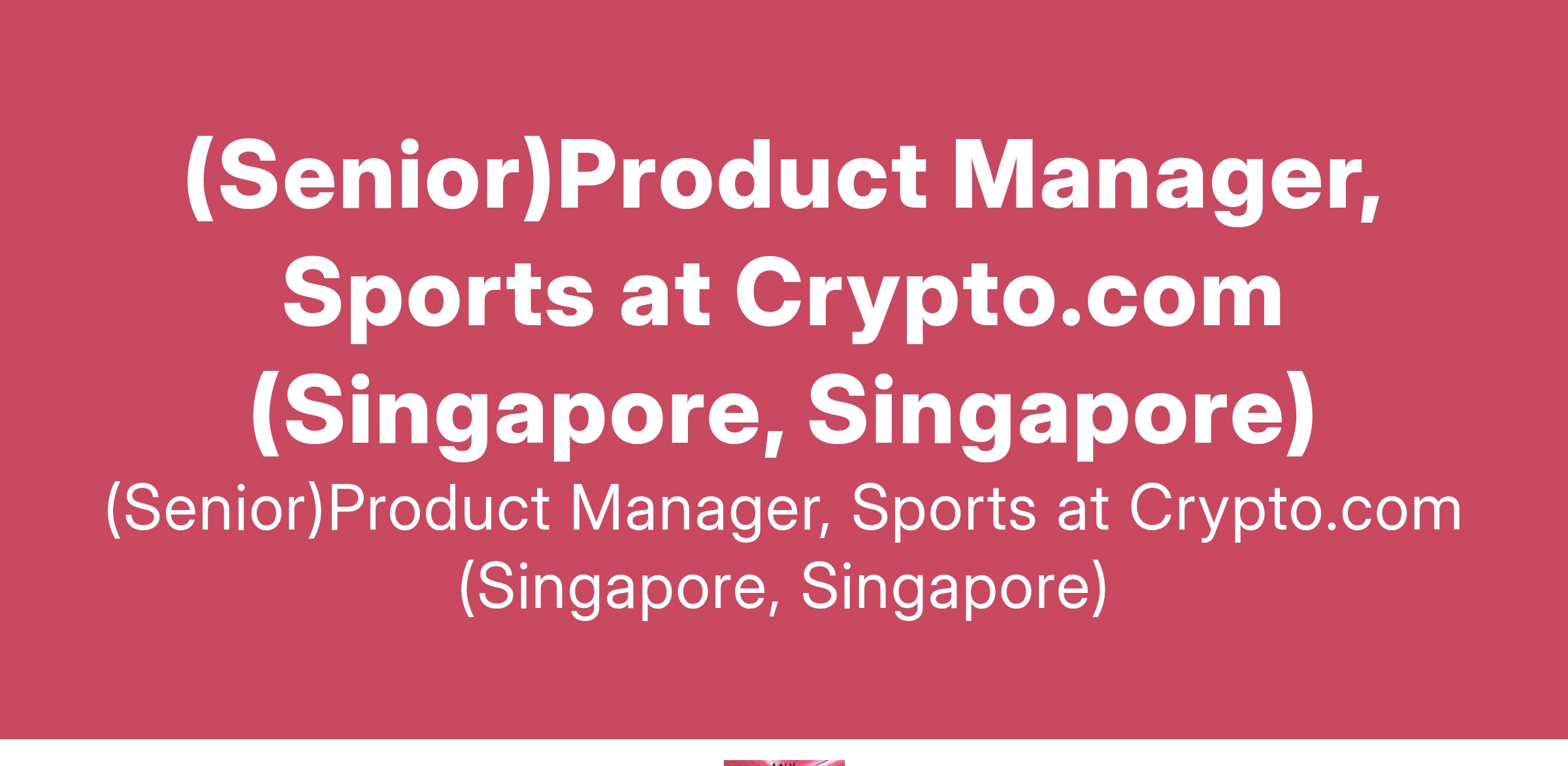 (Senior)Product Manager, Sports at Crypto.com (Singapore, Singapore)