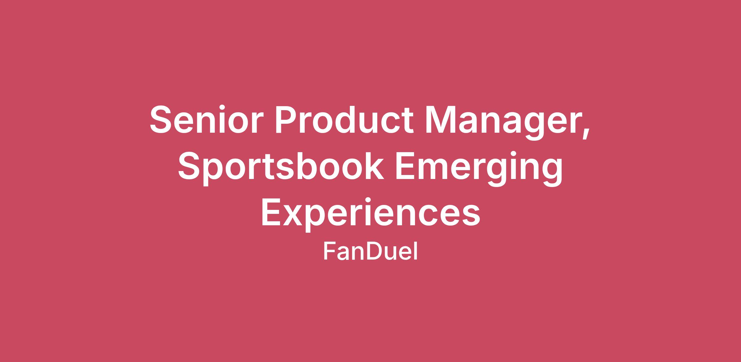 FanDuel is looking for a Senior Product Manager to focus on emerging opportunities and technologies within sportsbook – researching, prototyping, and experimenting on complex topics such as AI, NLP, social betting, and loyalty. If you’re a strong product leader with an interest in playing a critical role on projects with the potential to disrupt the sports betting industry and create long-term competitive advantage for FanDuel, this may be the role for you.