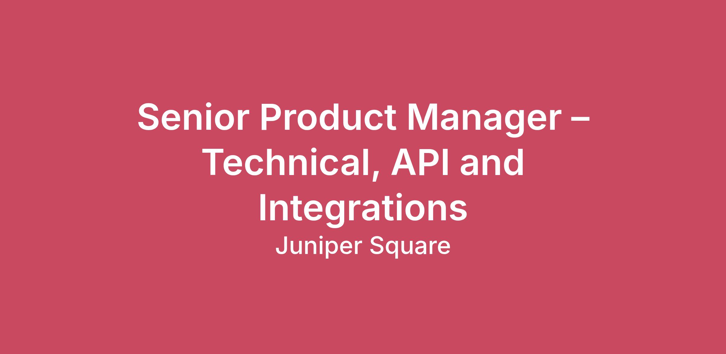 About Juniper SquareOur mission is to unlock the full potential of private markets. Privately owned assets like commercial real estate, private equity, and venture capital make up half of our financial ecosystem yet remain inaccessible to most people. We are digitizing these markets, and as a result, bringing efficiency, transparency, and access to one of the most productive corners of our financial ecosystem. If you care about making the world a better place by making markets work better through technology – all while contributing as a member of a values-driven organization – we want to hear from you. Juniper Square offers employees a variety of ways to work, ranging from a fully remote experience to working full-time in one of our physical offices. We invest heavily in digital-first operations, allowing our teams to collaborate effectively across 27 U.S. states, 2 Canadian Provinces, India, Luxembourg, and England. We also have physical offices in San Francisco, New York City, Mumbai and Bangalore for employees who prefer to work in an office some or all of the time.About your roleWe are seeking an experienced Technical Product Manager to lead the strategy, development, rollout, and lifecycle management of Juniper Square’s API product suite. In this role, you will own the vision, roadmap, and execution for APIs that enable seamless integration between our core platform, our clients’ proprietary technology stacks, and key third-party platforms across the fintech ecosystem.You will work cross-functionally with engineering, architecture, security, compliance, client success, and business stakeholders to design scalable API solutions that meet rigorous technical and regulatory standards. You will also work directly with clients’ technical teams to understand their integration requirements and ensure smooth adoption of our API products.This role requires deep technical acumen, strong product leadership, experience in API ecosystems, great client engagement skills, and the ability to translate complex integration needs into clear, actionable product requirements.What you’ll doProduct Strategy & VisionDefine and own the API product vision, long-term strategy, and roadmap, aligning with company goals and customer integration needs.Identify opportunities to expand our API offerings to support new financial products, data capabilities, and partnership integrations.Implement industry best practices in API-first products to ensure we meet and exceed scale, security and compatibility standardsAPI Product Development & Lifecycle ManagementTranslate business and client integration requirements into detailed product requirements, user stories, and API specifications.Work closely with engineering and architecture teams to design RESTful API endpoints, data models, versioning standards, authentication mechanisms, and integration workflows.Prioritize API features, enhancements, and technical debt based on customer impact, business value, and engineering capacity.Manage full lifecycle of API products including development, testing, documentation, versioning, deprecation, and migration planning.Customer & Partner Integration EnablementAct as the primary product-facing technical liaison to client engineering teams, understanding integration requirements and helping them adopt our APIs successfully.Lead discovery sessions with clients to map data flows, identify integration challenges, and propose API-based solutions.Support technical onboarding by ensuring clear documentation, sample code, sandbox environments, SDKs, and troubleshooting guides.Collaborate with implementation and support teams to resolve integration issues and optimize API usage.Cross-Functional CollaborationxWork closely with engineering leads to ensure technical feasibility, scalability, performance, and security of API products.Partner with security, risk, and compliance teams to ensure APIs meet regulatory requirements and follow best practices for data protection.Collaborate with product marketing to articulate API capabilities, value propositions, and go-to-market messaging.Coordinate with sales and client success to provide technical product insights and support pre- and post-sales discussions.Technical Leadership & API GovernanceEstablish and maintain API governance standards including versioning, documentation guidelines, lifecycle management, and design best practices.Evaluate and integrate third-party technologies, APIs, and data services that enhance our product ecosystem.Work with our engineering teams to ensure reliable API deployment pipelines, monitoring, alerting, and uptime performance.Drive continuous improvements to API usability, developer experience, performance, and reliability.Qualifications5–8+ years of experience as a Technical Product Manager or similar role, with at least 3 years specifically managing API products or technical platforms.Strong understanding of RESTful API design, data modeling, authentication/authorization frameworks, and integration patterns.Hands-on experience working with client engineering teams to enable API adoption or build integrations.Skilled in translating complex technical concepts into clear product requirements.Experience with cloud platforms (AWS, GCP, Azure) and modern DevOps practices.Familiarity with third-party APIs, middleware, data integration solutions, or enterprise integration patterns.Strong technical acumen, analytical mindset, and ability to understand system architectures and data flows.Excellent communication skills with the ability to interface effectively with technical and non-technical stakeholders.Preferred QualificationsBackground in fintech, banking, payments, or financial services.Prior work with API gateways, developer portals, and API management tools (e.g., Apigee, Kong, AWS API Gateway)Prior experience with IPaaS solutions such as Mulesoft, Zapier, WorkatoPrior experience working with 3rd party vendors/consultants in developing client solutions