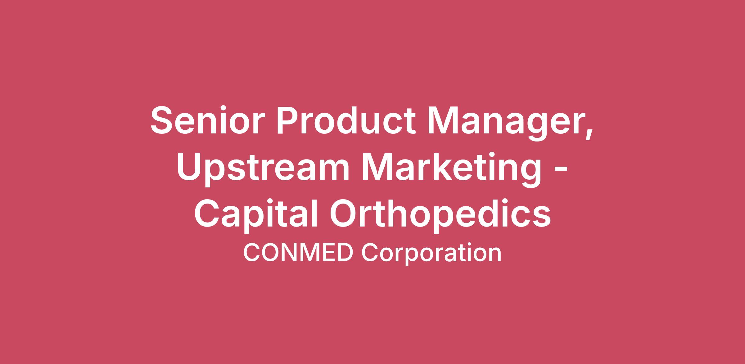 We are seeking an experienced medical device Senior Product Manager who will have responsibility for the global upstream strategy, product development, and lifecycle management of an assigned Orthopedic product portfolio.In this critical position, you will have primary global upstream responsibility for driving product strategy, new product development (NPD), and long‑range portfolio planning within Capital Orthopedics. Your focus will be identifying unmet customer needs, translating insights into differentiated product concepts, and partnering cross‑functionally to deliver profitable, clinically meaningful innovation. You will have significant latitude to shape portfolio direction, influence investment decisions, and define multigenerational product roadmaps. Close collaboration with downstream marketing, R&D, Clinical, Quality, Regulatory, Operations, Finance, and Sales is essential to success.Your day‑to‑day activities in this role will include, but are not limited to, market and customer insights generation, product strategy development, NPD core team leadership, product lifecycle (PLM) management, competitive intelligence, and portfolio optimization. You should have a strong understanding of upstream marketing principles, demonstrated experience leading complex cross‑functional initiatives, and excellent communication and project management skills.CONMED is a leader in medical technology. We empower healthcare providers worldwide to deliver exceptional outcomes for patients. If you are committed to making a difference and delivering exceptional results, you’ll find a group of people here that shares your passion for meaningful work. You’ll be supported by a leadership team that promotes engagement through professional development, new challenges, and growth opportunities over the course of your career. Come inspire us through your dedication, creativity, and exceptional performance — we’ll do the same for you.What You’ll DoGlobal Upstream Marketing Responsibilities• Serve as the upstream marketing lead and core team member for New Product Development (NPD), owning key marketing deliverables required for internal governance and external regulatory bodies (e.g., MRD, value proposition, claims strategy, launch readiness inputs).• Lead market assessment and opportunity identification through Voice of Customer (VOC), market research, competitive analysis, and trend evaluation to identify unmet needs and growth opportunities.• Develop and maintain product strategy, positioning, and multigenerational product roadmaps aligned with business objectives and long‑term portfolio strategy.• Drive product portfolio optimization initiatives, including lifecycle management decisions, investment prioritization, and rationalization activities.• Define product requirements and collaborate closely with R&D to ensure customer needs are translated into clinically meaningful, differentiated solutions.• Serve as the market and customer expert for the assigned portfolio, maintaining deep understanding of surgeon workflows, competitive offerings, and emerging technologies.• Partner with Clinical, Regulatory, Quality, and R&D teams to support evidence generation strategies, clinical evaluations, and safe and effective product use.• Develop and maintain competitive intelligence, including competitive benchmarking, positioning, and differentiation strategies.• Build and maintain strong relationships with key opinion leaders (KOLs) to support product development, clinical insight, and innovation initiatives.• Collaborate with downstream marketing, sales, and clinical education teams to ensure strong upstream‑to‑downstream handoff, supporting launch readiness, messaging alignment, and long‑term growth plans.• On occasion, work with surgeons and sales representatives in operating room or laboratory environments to support product evaluations and development activities.• Attend major industry conventions and internal meetings to engage with customers, faculty, and cross‑functional stakeholders.• Manage assigned upstream project budgets and deliverables in alignment with business plans.What You’ll Bring• Bachelor’s Degree required; MBA preferred.• 7+ years of progressive experience in medical device marketing, product management, or upstream marketing roles.• Demonstrated experience leading upstream product strategy and NPD initiatives within the medical device industry.• Experience in Orthopedics, capital equipment, disposable technologies, or adjacent surgical markets preferred.• Strong ability to translate customer and market insights into clear product strategies and development priorities.• Proven success leading and influencing cross‑functional teams without direct authority.• Excellent analytical, organizational, and communication skills (verbal and written).• High level of personal ownership, accountability, and strategic thinking.• Creative problem‑solving skills with the ability to navigate ambiguity in a fast‑paced environment.• Proficient in Microsoft Office (Word, Excel, PowerPoint).• Travel requirements dependent on location; Largo area ~30%, Remote ~40%.*This position is not eligible for employer-based visa sponsorship.Disclosure as required by applicable law, the annual salary range for this position is $126,700 – $203,620 with bonus opportunity. The actual compensation may vary based on geographic location, work experience, education and skill level. The salary range is CONMED’s good faith belief at the time of this posting.This job posting is anticipated to close on May 18 , 2026. We may, however, extend this time period, in which case the posting will remain available on careers.conmed.com. Please submit your application as soon as possible as we will be reviewing applications on a rolling basis as we receive them.Benefits:CONMED offers a wide array of benefits to fit your unique needs. Visit our Benefits Pa