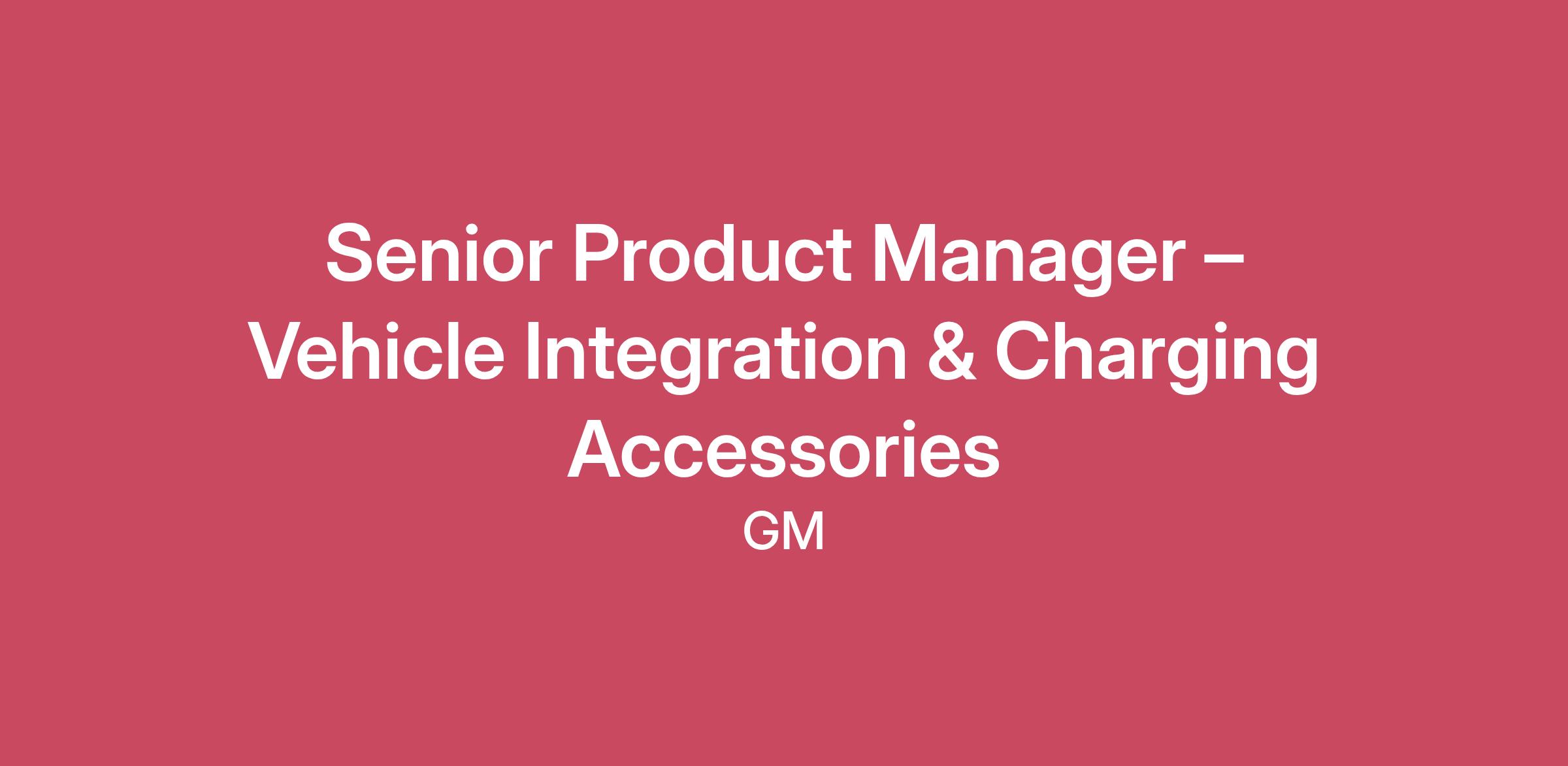 Job DescriptionRole Summary GM Energy is seeking a Senior Product Manager to own the strategy, roadmap, and execution for Vehicle Integration and Accessory Product Management that enables seamless charging and energy experiences for our customers. This role will focus on EV charging adapters and vehicle charging strategy; ensuring GM vehicles work seamlessly with GM Energy products. Key Responsibilities Maintain product requirements and product maintenance of already launched charging adapters. Own vehicle integration strategy and requirements for charging and energy products, including interoperability requirements and certification plans. Partner with engineering and software teams to ensure compliance with charging standards (SAE J3072, ISO 15118-2, DIN 70121). Drive interoperability testing and maintain a ‘compatibility matrix for vehicles, accessories, and visible features such as bi-directional capability. Collaborate with UX and app teams to deliver intuitive setup and charging flows for to ensure ease of use for adapters and cordsets. Ensure seamless integration with the GM mobile app and vehicle controls. Lead certification processes for adapters (Underwriters Laboratory, Energy Star, Canadian Standards Association, National Electric Code) and vehicle handshake protocols. Manage relationships with suppliers and research test laboratories to ensure timely delivery and quality. Work closely across hardware, software, and operations teams to deliver products on time and within budget. Monitor and benchmark industry trends and standards to keep products competitive and future-ready. Qualifications 6–8 years in product management or systems engineering for EVSE, vehicle integration, or energy products. Familiarity with EV charging standards (Examples: ISO 15118, SAE J1772/J3400, OCPPs). Understanding of hardware-software integration and interoperability testing. Strong roadmap planning and execution skills. Excellent communication, documentation and stakeholder management. Ability to translate technical complexity into customer-centric solutions. Bachelor’s degree in Engineering, MBA, MS or equivalent experience preferred. Preferred Experience with charging accessory products for use in EVs and EVSEs or knowledge of the automotive industry. Knowledge of certification processes and regulatory compliance for electrical products. Familiarity with OTA updates and app integration for connected devices. GM does not provide immigration-related sponsorship for this role. Do not apply for this role if you will need GM immigration sponsorship now or in the future. This includes direct company sponsorship, entry of GM as the immigration employer of record on a government form, and any work authorization requiring a written submission or other immigration support from the company (e.g., H1-B, OPT, STEM OPT, CPT, TN, J-1, etc). This role is categorized as hybrid. This means the selected candidate is expected to report to a specific location at least 3 times a week {or other frequency dictated by their manager}. This job is not eligible for relocation benefits. Any relocation costs would be the responsibility of the selected candidate. About GMOur vision is a world with Zero Crashes, Zero Emissions and Zero Congestion and we embrace the responsibility to lead the change that will make our world better, safer and more equitable for all.Why Join Us We believe we all must make a choice every day – individually and collectively – to drive meaningful change through our words, our deeds and our culture. Every day, we want every employee to feel they belong to one General Motors team.Benefits OverviewFrom day one, we're looking out for your well-being–at work and at home–so you can focus on realizing your ambitions. Learn how GM supports a rewarding career that rewards you personally by visiting Total Rewards resources.Non-Discrimination and Equal Employment Opportunities (U.S.)General Motors is committed to being a workplace that is not only free of unlawful discrimination, but one that genuinely fosters inclusion and belonging. We strongly believe that providing an inclusive workplace creates an environment in which our employees can thrive and develop better products for our customers.All employment decisions are made on a non-discriminatory basis without regard to sex, race, color, national origin, citizenship status, religion, age, disability, pregnancy or maternity status, sexual orientation, gender identity, status as a veteran or protected veteran, or any other similarly protected status in accordance with federal, state and local laws. We encourage interested candidates to review the key responsibilities and qualifications for each role and apply for any positions that match their skills and capabilities. Applicants in the recruitment process may be required, where applicable, to successfully complete a role-related assessment(s) and/or a pre-employment screening prior to beginning employment. To learn more, visit How we Hire.AccommodationsGeneral Motors offers opportunities to all job seekers including individuals with disabilities. If you need a reasonable accommodation to assist with your job search or application for employment, email us or call us at 800-865-7580. In your email, please include a description of the specific accommodation you are requesting as well as the job title and requisition number of the position for which you are applying.