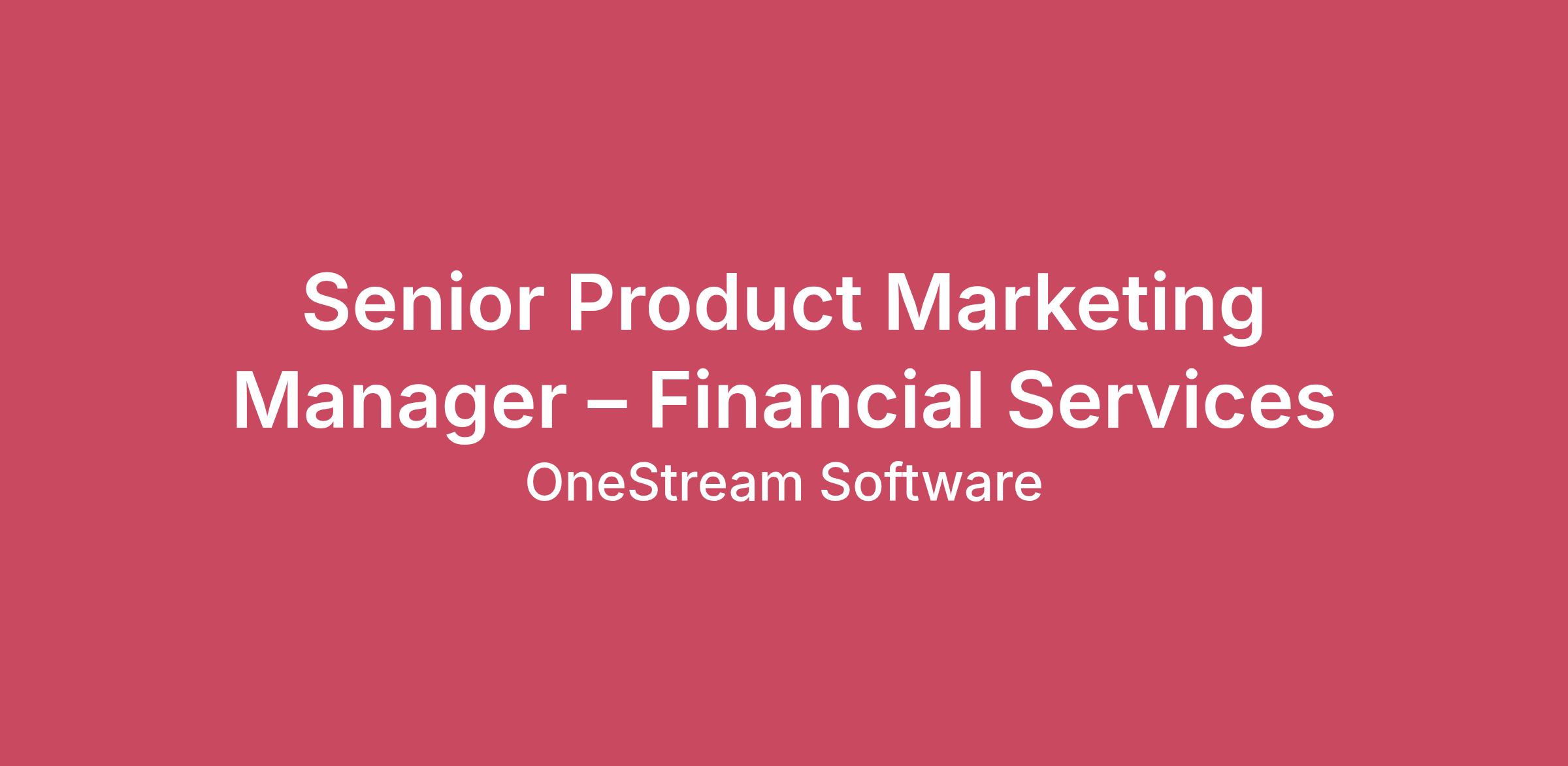 Senior Product Marketing Manager – Financial Services Location: Remote, USA Employment Type: Full-Time Compensation: $138,000.00 - $172,250.00 (Range applies to US candidates only) + Benefits/Variable Comp- Range may vary based on experience. Benefits Offered: Vision, Medical, Life, Dental, 401K Summary The Senior Manager of Product Marketing will own and scale OneStream’s Go-To-Market strategy for the Financial Services industry, with a primary focus on Banking. This role serves as the industry GTM leader — responsible for defining vertical strategy, shaping differentiated positioning, and driving revenue impact across regional banks, super regionals, credit unions, and diversified financial institutions. Reporting to the Senior Director of Product Marketing, this role will partner closely with Sales, Product, Competitive Intelligence, and Field Marketing to build repeatable banking plays that accelerate pipeline, improve win rates, and expand deal size. You will develop industry-specific narratives, solution use cases, and enablement frameworks that resonate with CFOs, FP&A leaders, risk teams, and IT decision-makers. This is a high-impact role for a strategic marketer who thrives at the intersection of industry expertise and GTM execution — someone who wants to own a vertical, influence product direction, and help shape OneStream’s leadership position in financial services. Primary Duties and Responsibilities Own the Go-To-Market strategy for the Financial Services industry with a primary focus on Banking, including regional banks, super regionals, credit unions, and diversified financial institutions. Serve as the internal banking subject-matter expert, translating industry trends, regulatory pressures, and operational challenges into differentiated positioning and field-ready messaging. Design and execute vertical GTM plays that drive pipeline growth, improve win rates, and expand average deal size across the banking sector. Partner closely with Sales leadership to embed banking plays into account strategies, deal pursuits, and territory planning. Develop industry-specific messaging, value narratives, and use-case frameworks that resonate with CFOs, FP&A leaders, risk teams, and IT decision-makers. Own sales enablement for the banking vertical, including the development of playbooks, talk tracks, competitive battlecards, and ROI and business case tools. Lead cross-functional GTM planning for banking-specific launches, campaigns, field events, and executive programs. Collaborate with Field Marketing to activate industry campaigns, ABM programs, webinars, and in-person events. Drive buyer persona development and industry research to uncover new opportunities and inform product and GTM strategy. Partner with Competitive Intelligence to develop banking-specific competitive positioning and win strategies. Influence product roadmap priorities by providing market, customer, and competitive insights from the banking vertical. Build a strong customer advocacy program within Financial Services, including case studies, videos, and reference accounts. Represent OneStream as a banking thought leader at industry conferences, analyst briefings, and customer events. Track and report success metrics, including pipeline influence, win rates, ACV growth, and campaign performance. Required Education and Experience Bachelor’s degree in Accounting, Finance, or Business. 5+ years experience in Financial Services, with Banking exposure (regional banks, super‑regionals, credit unions). Experience across the full GTM lifecycle (launches, messaging, enablement) Experience enabling enterprise sales motions. Ownership of vertical‑level GTM strategy, not just product messaging. Proven experience partnering directly with Sales leadership on pipeline and deal strategy. Preferred Education and Experience Relevant industry experience in corporate performance management (CPM), Product Marketing, Sales, Pre-Sales or Consulting with a solid understanding of finance processes and the target personas. Experience in the full lifecycle of product launches to market, including interacting with product development, planning, defining messaging & content, campaign management, PR and influencing analysts. Excellent communication skills, including writing, content development and presentation. Strong understanding and track record of enabling the entire sales cycle: sales enablement, selling to customers/partners, and conversations with business executives and technical decision-makers. Experience in high-growth B2B Cloud businesses. Experience managing external resources and collaborating with other functions in the company. Financial Services experience is a plus. Knowledge, Skills, and Abilities High energy, creativity and can-do attitude – a strong leader. Agility, ability to manage multiple priorities and bias-for-action with exemplary results. Ability to work globally cross-functionally across an organization with minimum supervision. Strong multi-tasking and time management skills. Proactive & Positive. Excellent interpersonal skills. Highly self-motivated and directed. Keen attention to detail. Exceptional customer service orientation. Travel Ability and willingness to travel 15%. Who We Are OneStream is how today’s Finance teams can go beyond just reporting on the past and Take Finance Further™ by steering the business to the future. It’s the only enterprise finance platform that unifies financial and operational data, embeds AI for better decisions and productivity, and empowers the CFO to become a critical driver of business strategy and execution. Our vision is to be the operating system for modern finance, digitizing core financial functions and empowering the CFO to become a critical driver of business strategy. To learn more visit www.onestream.com. Why Join The OneStream Team Transparency around corporate structure, salary, and benefits Core value of customer success Variety of project wo