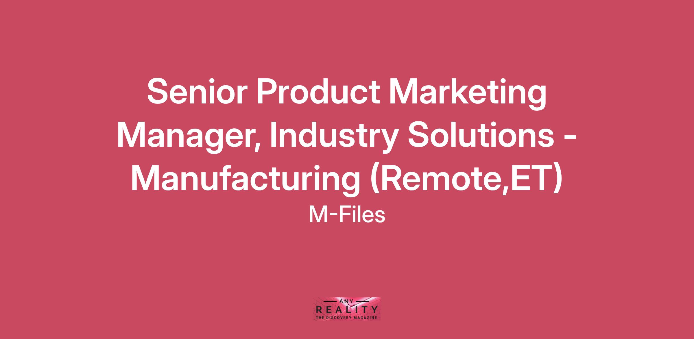 Senior Product Marketing Manager, Industry Solutions - Manufacturing (Remote,ET)