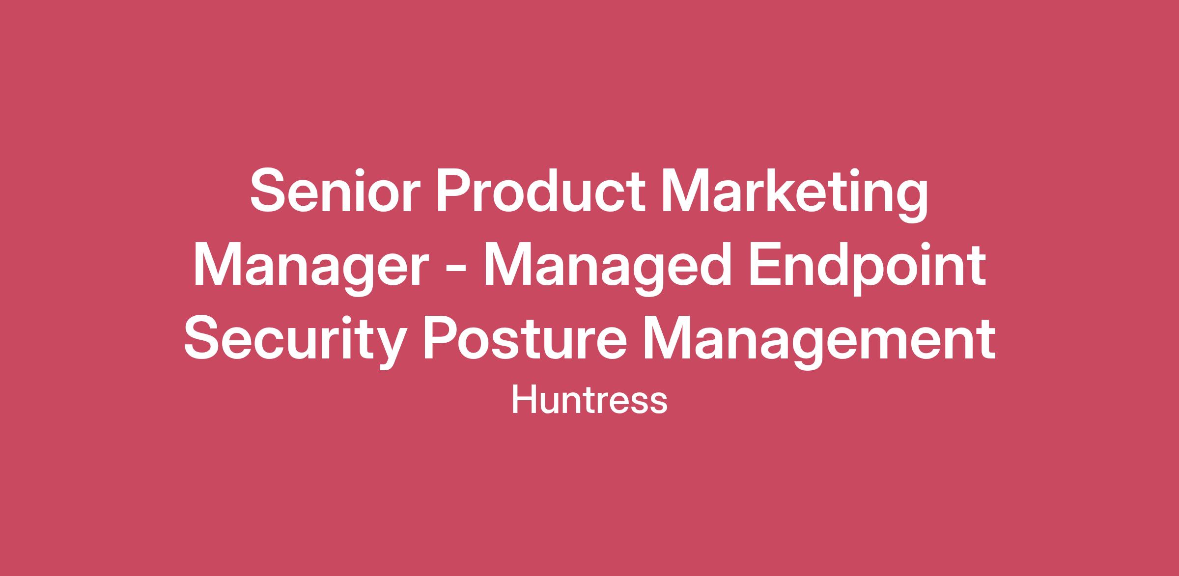 Reports to: Director, Product Marketing Location: Remote US Compensation Range: $160,000 to $180,000 base plus bonus and equity What We Do: Huntress is a fully remote, global team of passionate experts and ethical badasses on a mission to break down the barriers to cybersecurity. Whether creating purpose-built security solutions, hunting down hackers, or impacting our community, our people go above and beyond to change the security game and make a real difference. Founded in 2015 by former NSA cyber operators, Huntress protects all businesses—not just the 1%—with enterprise-grade, fully owned, and managed cybersecurity products at the price of an affordable SaaS application. The Huntress difference is our One Team advantage: our technology is designed with our industry-defining Security Operations Center (SOC) in mind and is never separated from our service. We protect 4M+ endpoints and 7M+ identities worldwide, elevating underresourced IT teams with protection that works as hard as they do. As long as hackers keep hacking, Huntress keeps hunting. What You’ll Do: Huntress is looking for a Senior Product Marketing Manager for Huntress Managed Endpoint Security Posture Management (ESPM). In this role, you will be responsible for positioning and messaging, content creation, sales enablement, product launches, and the overall go-to-market strategy for an exciting new product addition to Huntress' industry-leading solutions and Platform. The ideal candidate should have experience with security posture management products, be familiar with how businesses comply with industry frameworks and standards, have successfully launched new products into the market, and have a proven history of success in cybersecurity product marketing. You will need the ability to effectively collaborate across teams, including Product, Marketing, Sales, and executive leadership. Responsibilities: Positioning and Messaging: Develop and evolve a compelling narrative and value proposition for Huntress Managed ESPM. Content and Campaigns: Build content and help design campaigns that highlight the offering’s differentiators and benefits to stand out from the competition. Product Alignment: Partner with Product Management to drive the strategy around product positioning for existing capabilities and new launches. You will help plan and launch new offerings, capabilities, and releases to the market. Sales Enablement: Be the subject matter expert and product evangelist. Work with the sales team to develop programs that help drive the pipeline, convert opportunities, and expand into existing accounts. Demand Generation: Work with the Growth Marketing and Brand teams to hone the strategy and marketing programs that drive demand. Be proactive in identifying areas where the business may require marketing support and the effective levers to utilize. What You Bring To The Team: 6+ years of product marketing experience in cybersecurity, with specific experience in security posture management products like ESPM, ASPM, DSPM, or CSPM. Experience in areas like cybersecurity compliance with industry standards, frameworks, and regulations, and asset, configuration, and vulnerability management. Bonus points if you’ve implemented compliance frameworks and understand the challenges and pain points. Experience with MSP and other channel-driven go-to-market strategies or enterprise offerings is also desirable. Experience with positioning and messaging, asset creation, and defining and supporting campaigns that stand out in the marketplace and resonate with prospects. We are looking for someone who isn’t afraid to push the envelope and try new things to help Huntress win new business. Strong emotional intelligence and a natural collaborator. We need a high-performance self-starter who is always up for a challenge and takes ownership of their work. We’re looking for someone who can work across teams and handle the ups and downs of a rapid-growth company as we scale up. Strong spoken and written communication skills with an ability to break down complex concepts into understandable messaging. Expertise in collaborating with design and content marketing teams to create a range of different types of content (one-pagers, website content, whitepapers, demo videos, etc.). Comfortable creating and delivering presentations in a range of environments, with a talent for persuasive communication. You want to be a champion and influencer for security posture management. Creativity, energy, enthusiasm, and a strong desire to put your stamp on the product and make a big difference for Huntress and the customers we serve. We are looking for someone who shares our passion for the Huntress mission. What We Offer: 100% remote work environment - since our founding in 2015 Generous paid time off policy, including vacation, sick time, and paid holidays 12 weeks of paid parental leave Highly competitive and comprehensive medical, dental, and vision benefits plans 401(k) with a 5% contribution regardless of employee contribution Life and Disability insurance plans Stock options for all full-time employees One-time $500 reimbursement for building/upgrading home office Annual allowance for education and professional development assistance $75 USD/month digital reimbursement Access to the BetterUp platform for coaching, personal, and professional growth Huntress is committed to creating a culture of inclusivity where every single member of our team is valued, has a voice, and is empowered to come to work every day just as they are. We do not discriminate based on race, ethnicity, color, ancestry, national origin, religion, sex, sexual orientation, gender identity, disability, veteran status, genetic information, marital status, or any other legally protected status. We do discriminate against hackers who try to exploit businesses of any size. Accommodations: If you require reasonable accommodation to complete this application, interview, or pre-employment