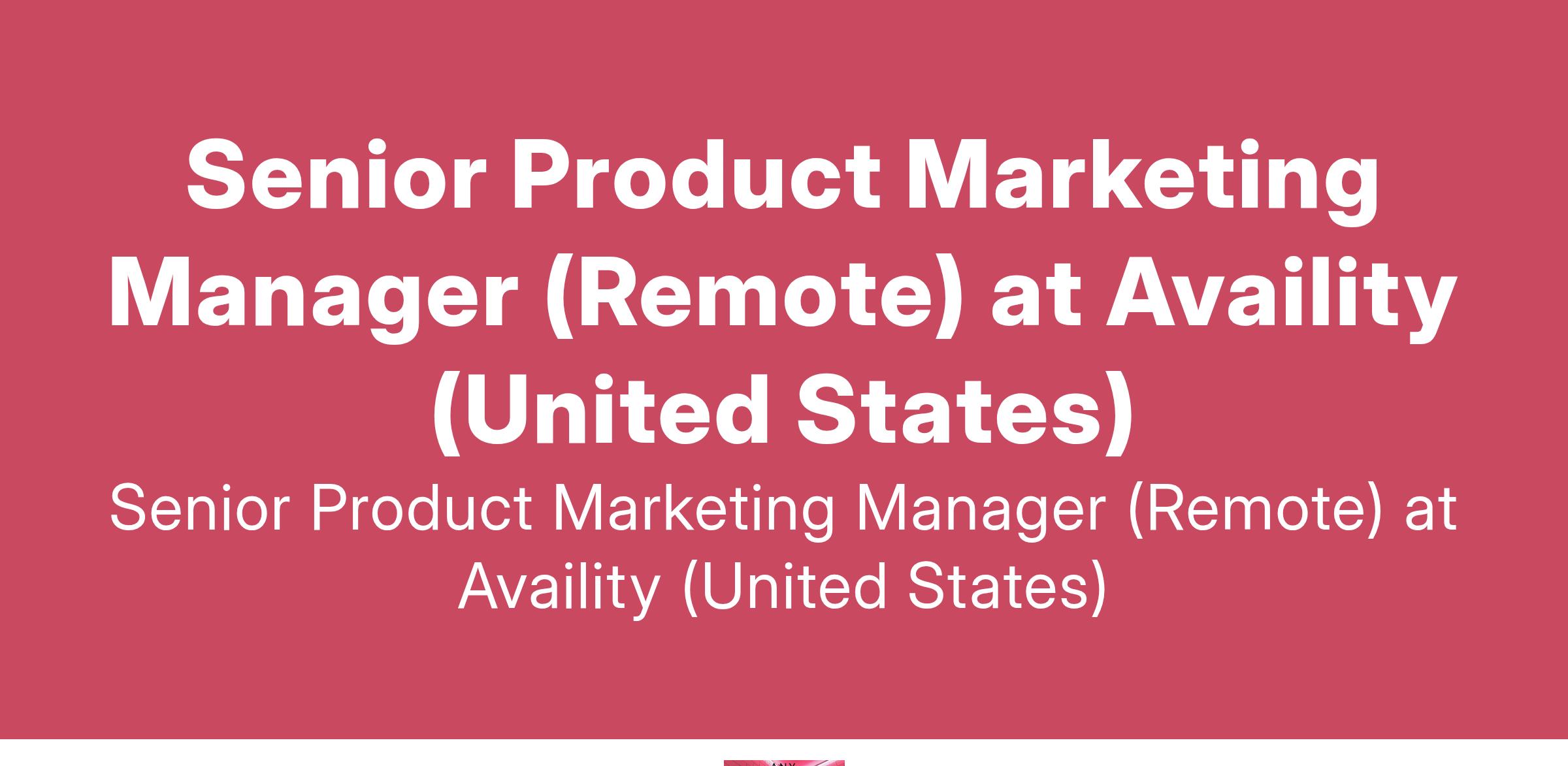 Senior Product Marketing Manager (Remote) at Availity (United States)