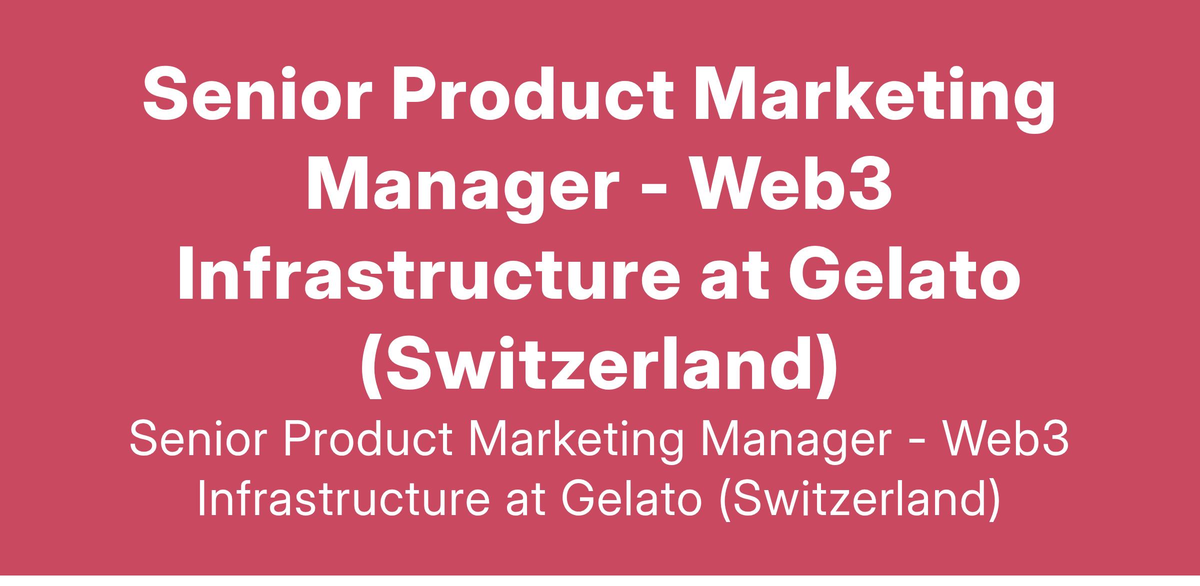Senior Product Marketing Manager - Web3 Infrastructure at Gelato (Switzerland)