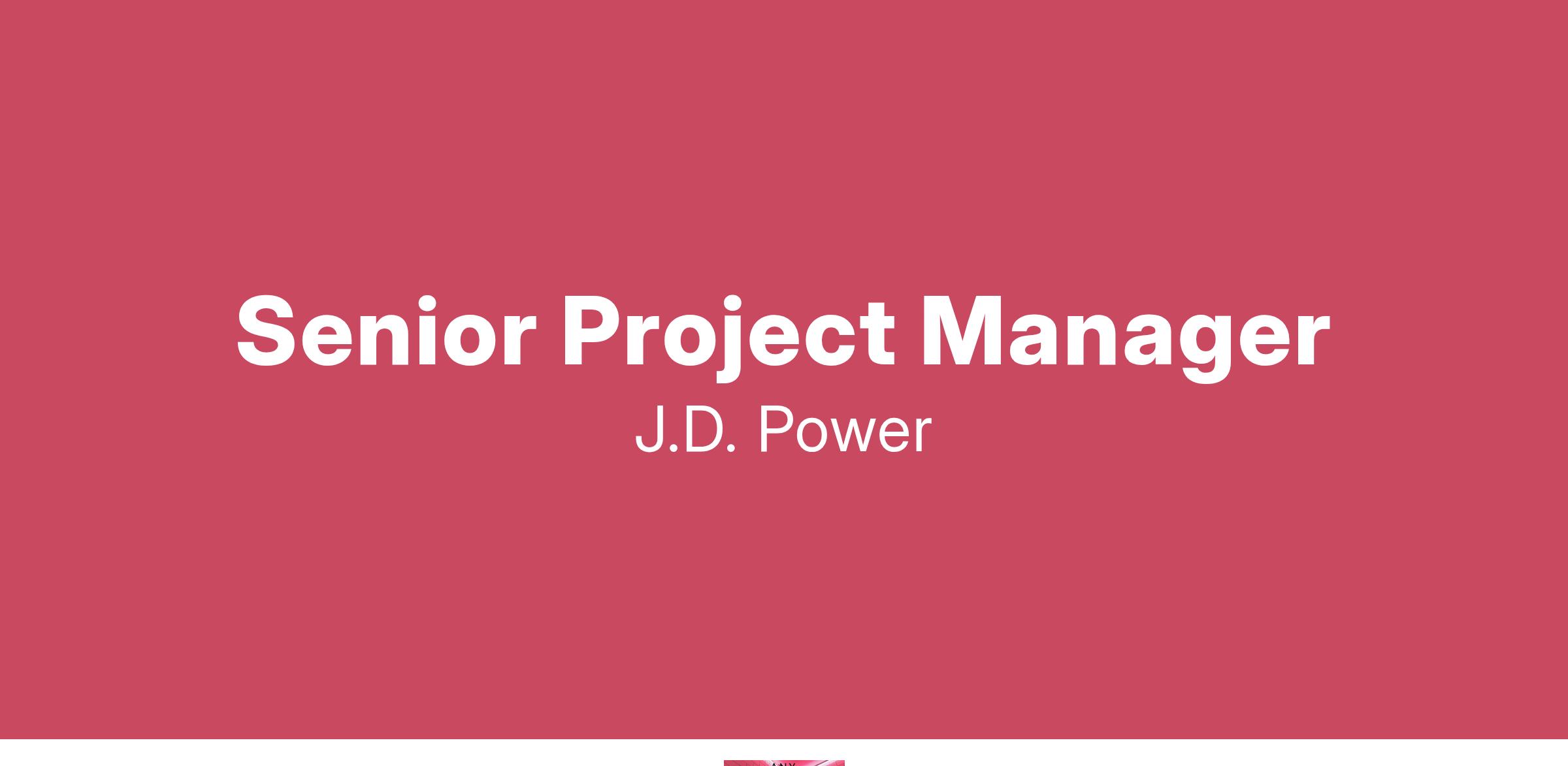 To all recruitment agencies: J.D. Power does not accept unsolicited agency resumes and we are not responsible for any fees related to unsolicited resumes.
