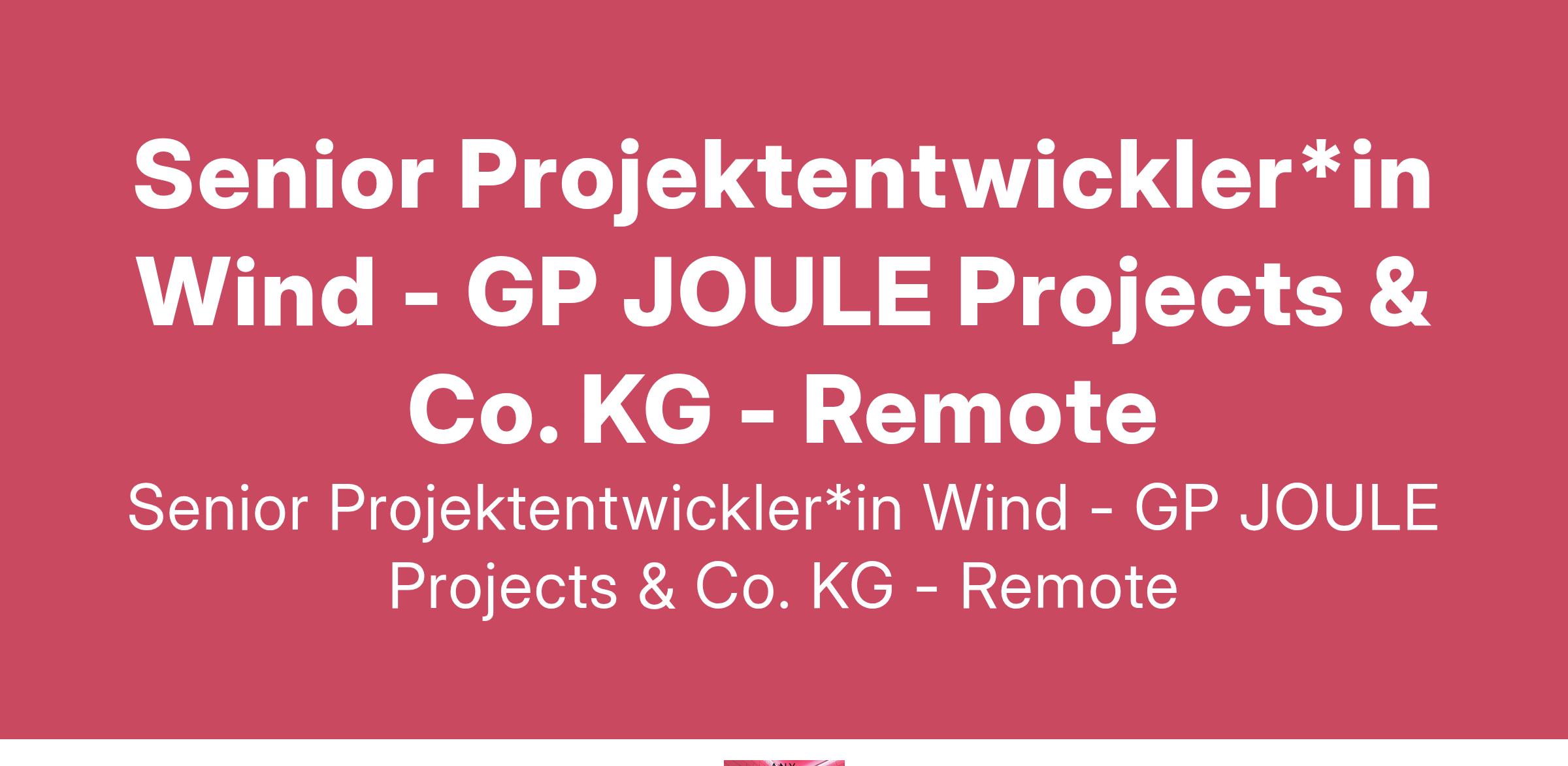 Senior Projektentwickler*in Wind - GP JOULE Projects & Co. KG - Remote