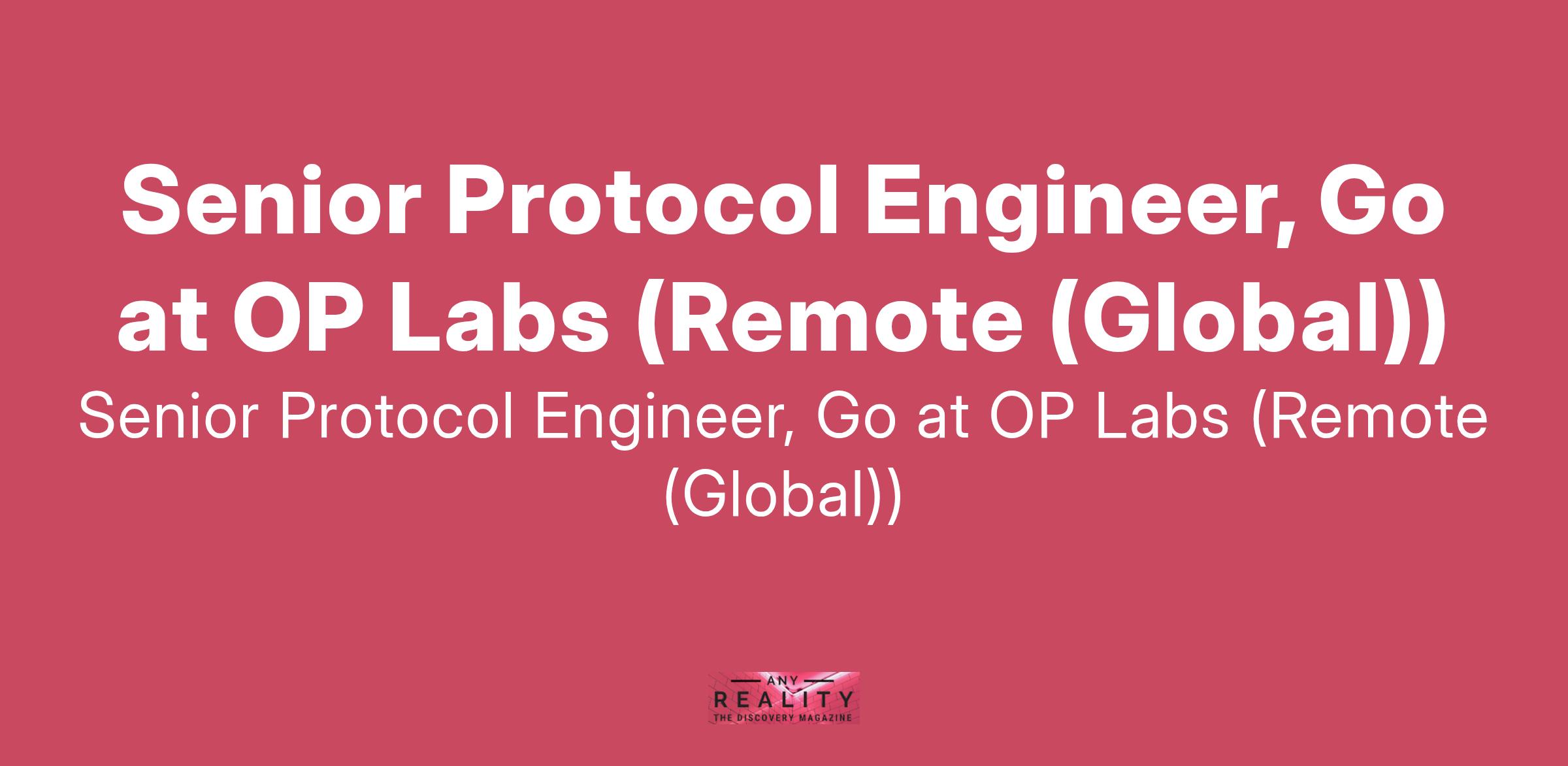 Senior Protocol Engineer, Go at OP Labs (Remote (Global))