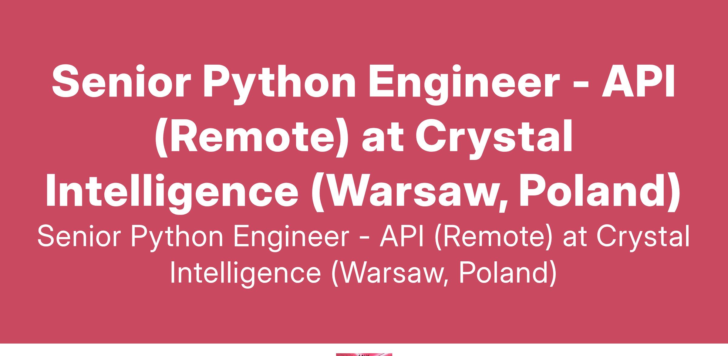 Senior Python Engineer - API (Remote) at Crystal Intelligence (Warsaw, Poland)