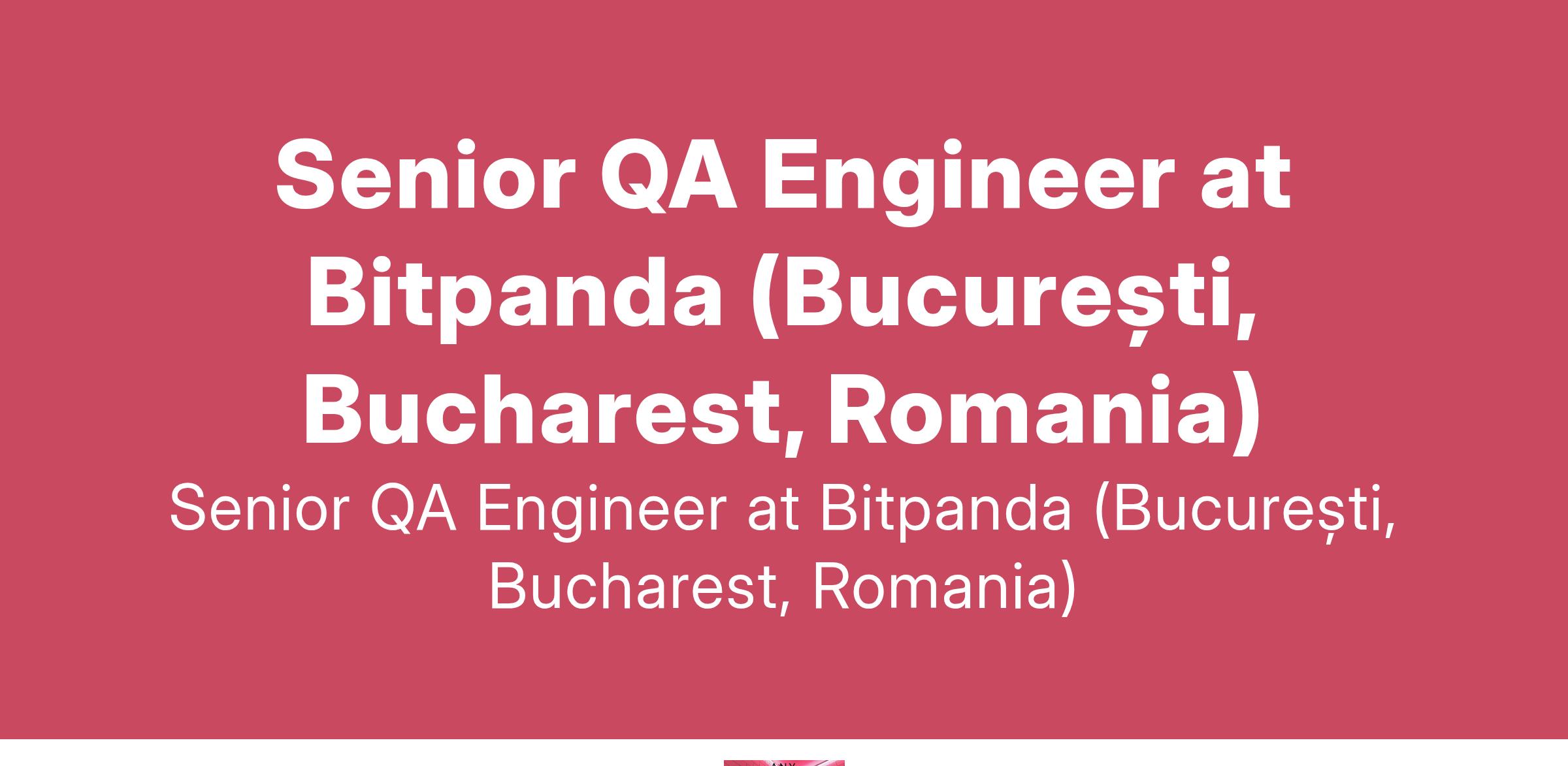 Senior QA Engineer at Bitpanda (București, Bucharest, Romania)