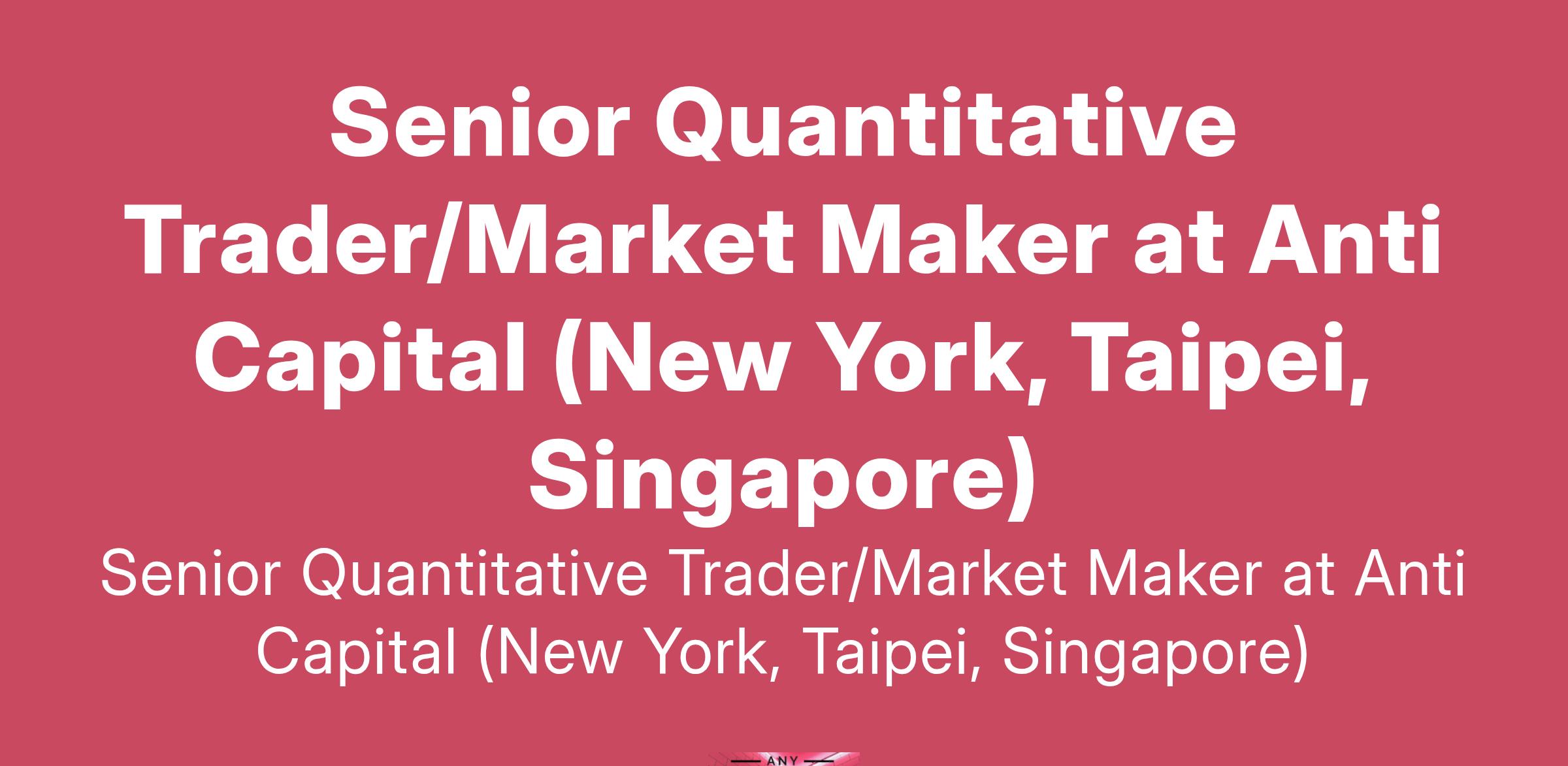 Senior Quantitative Trader/Market Maker at Anti Capital (New York, Taipei, Singapore)