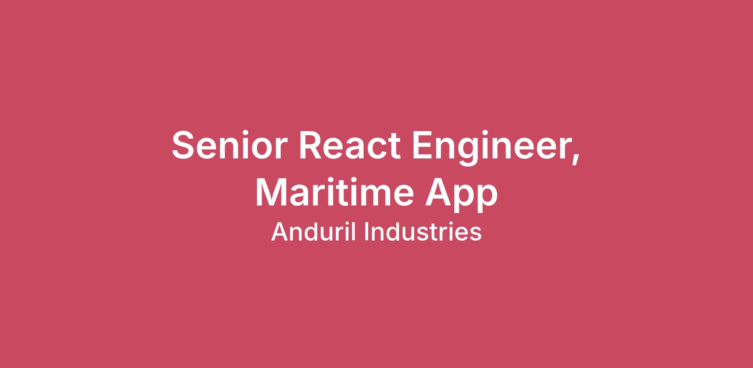 ABOUT THE TEAM The Maritime App team builds the full-stack web application (part of Lattice OS) used to control all of Anduril’s Maritime products (Dive-LD, Dive-XL, Copperhead, Seabed Sentry, ASV, and more) from nodes in the cloud and laptops in the field. We bring together all the advanced tech from Anduril’s Software Platform into a hardened Maritime-focused software stack that’s shipped along with our autonomous maritime robots. We’re a full-stack web application team building a slick, modern, map-focused React frontend with a Go backend. We leverage Anduril’s proprietary mesh networking and distributed storage tech to keep Lattice working smoothly even in extreme network conditions (there’s no wifi underwater). ABOUT THE JOB We’re looking for an experienced frontend/full-stack engineer to shape the future of our web app architecture and infrastructure. Lattice for Maritime is only a couple years old and has a lot of exciting capabilities to build over the coming years! You will lead us in continuously evolving our architecture and best practices to ensure your teammates can continue to build performant and reliable features efficiently. This role requires a solid foundation in web technologies, managing large React codebases, optimizing runtime and build performance, and optimizing communication with the backend.If you're a collaborative problem-solver who finds satisfaction in creating tools that amplify the effectiveness of other engineers, we want to talk to you. WHAT YOU’LL DO Design and implement architectural patterns, tools, and best practices for building components, pages, services, and apps Proactively identify pain points and opportunities to improve our dev experience and infrastructure Work across the stack (front-end, back-end, build, CI/CD) to get things done Support and mentor fellow engineers on engineering best practices, and on how to best use our tools Lead the creation of net-new apps and/or break our app down into more focused experiences Harden our component library to work more seamlessly with our design system Evolve our use of libraries (e.g. for mapping, charting, logging) to increase performance, maintainability, and usefulness. And make them really really ridiculously good looking. REQUIRED QUALIFICATIONS Bachelor's degree in Computer Science or related field; or equivalent industry experience Experience building production web applications in JavaScript or TypeScript (we use TypeScript and React) Experience designing architectural patterns, tooling, or best practices, and leading engineering teams in adopting them Experience effectively integrating tools and libraries (build systems, component libraries, testing frameworks, monitoring) into frontend codebases and CI/CD pipelines Familiarity with modern backend programming languages such as Go, C++, or Rust. High empathy for your fellow engineers and users Minimum 5 years of software engineering experience Must be a U.S. Person due to required access to U.S. export controlled information or facilities PREFERRED QUALIFICATIONS Have a bias for action and taking ownership. You have a track record of solving a problem if you see one. Experience maintaining continuous integration systems (we use CircleCI) Experience or interest working in monorepos with modern build systems Experience or interest working in Go Experience with gRPC/protobuf or similar technologies Experience with NixOS Experience designing effective/reliable use of AI agents to augment software development teams US Salary Range$191,000 - $253,000 USDThe salary range for this role is an estimate based on a wide range of compensation factors, inclusive of base salary only. Actual salary offer may vary based on (but not limited to) work experience, education and/or training, critical skills, and/or business considerations. Highly competitive equity grants are included in the majority of full time offers; and are considered part of Anduril's total compensation package. Additionally, Anduril offers top-tier benefits for full-time employees, including: Healthcare Benefits US Roles: Comprehensive medical, dental, and vision plans at little to no cost to you. UK & AUS Roles: We cover full cost of medical insurance premiums for you and your dependents. IE Roles: We offer an annual contribution toward your private health insurance for you and your dependents. Additional Benefits Income Protection: Anduril covers life and disability insurance for all employees. Generous time off: Highly competitive PTO plans with a holiday hiatus in December. Caregiver & Wellness Leave is available to care for family members, bond with a new baby, or address your own medical needs. Family Planning & Parenting Support: Coverage for fertility treatments (e.g., IVF, preservation), adoption, and gestational carriers, along with resources to support you and your partner from planning to parenting. Mental Health Resources: Access free mental health resources 24/7, including therapy and life coaching. Additional work-life services, such as legal and financial support, are also available. Professional Development: Annual reimbursement for professional development Commuter Benefits: Company-funded commuter benefits based on your region. Relocation Assistance: Available depending on role eligibility. Retirement Savings Plan US Roles: Traditional 401(k), Roth, and after-tax (mega backdoor Roth) options. UK & IE Roles: Pension plan with employer match. AUS Roles: Superannuation plan. The recruiter assigned to this role can share more information about the specific compensation and benefit details associated with this role during the hiring process. To view Anduril's candidate data privacy policy, please visit https://anduril.com/applicant-privacy-notice/.