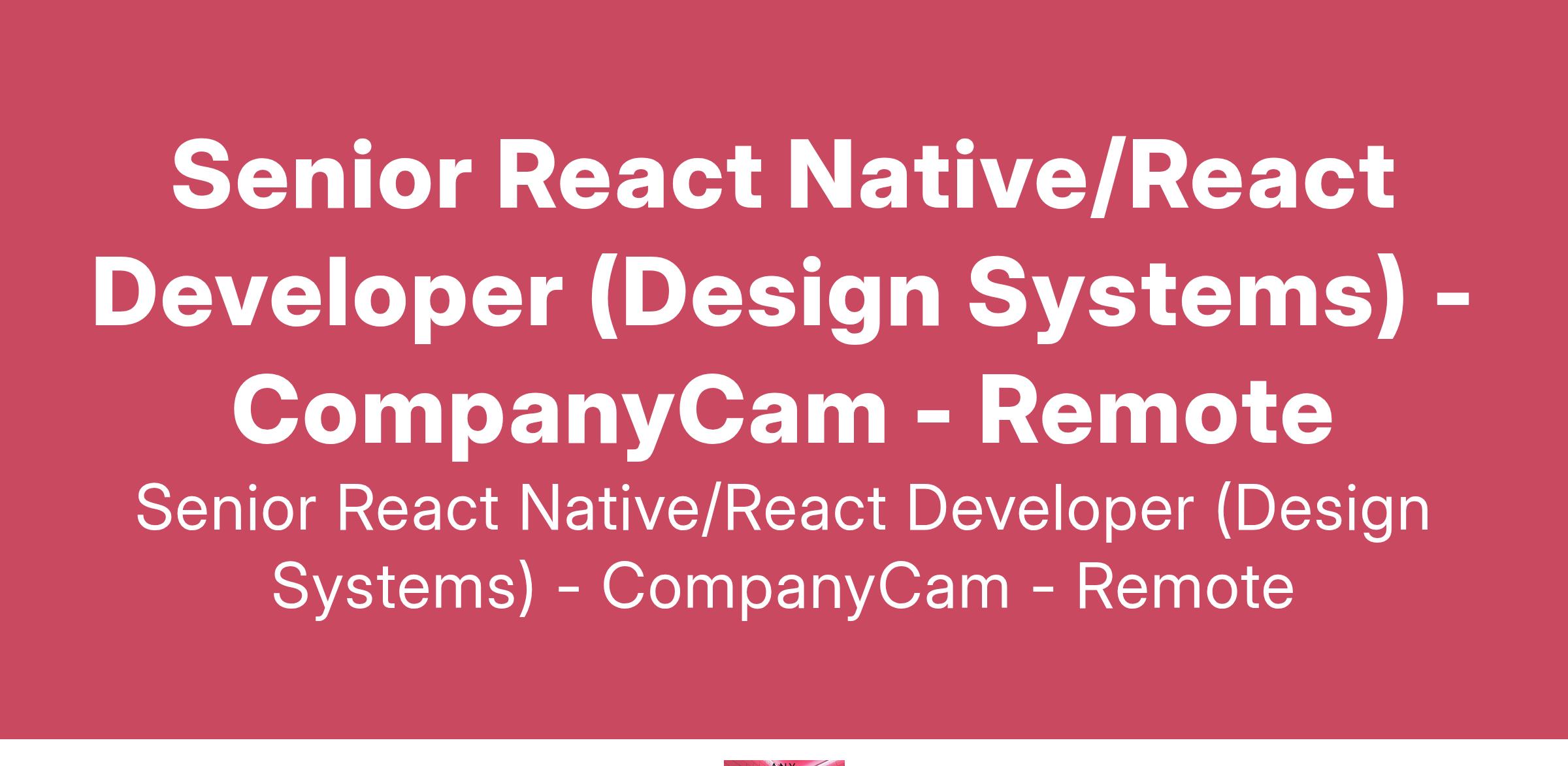 We’re seeking a sharp, self-motivated, problem-solving Senior React Native/React Developer (Design Systems) to join our Design System (Slab) Team. In this role, you’ll play a key part in ensuring that CompanyCam’s engineers have the tools and resources they need to effectively utilize, iterate on, and contribute to our component libraries.