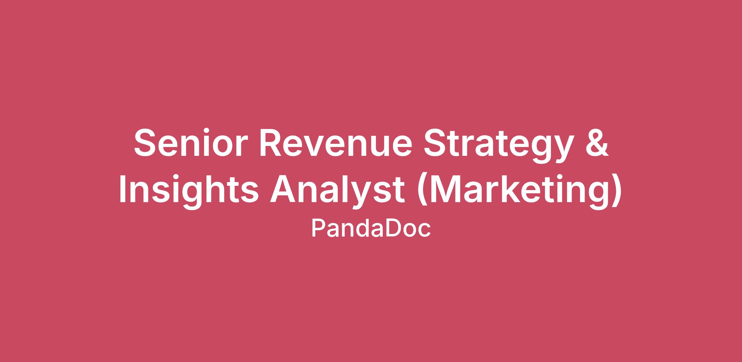 Senior Revenue Strategy & Insights Analyst (Marketing)