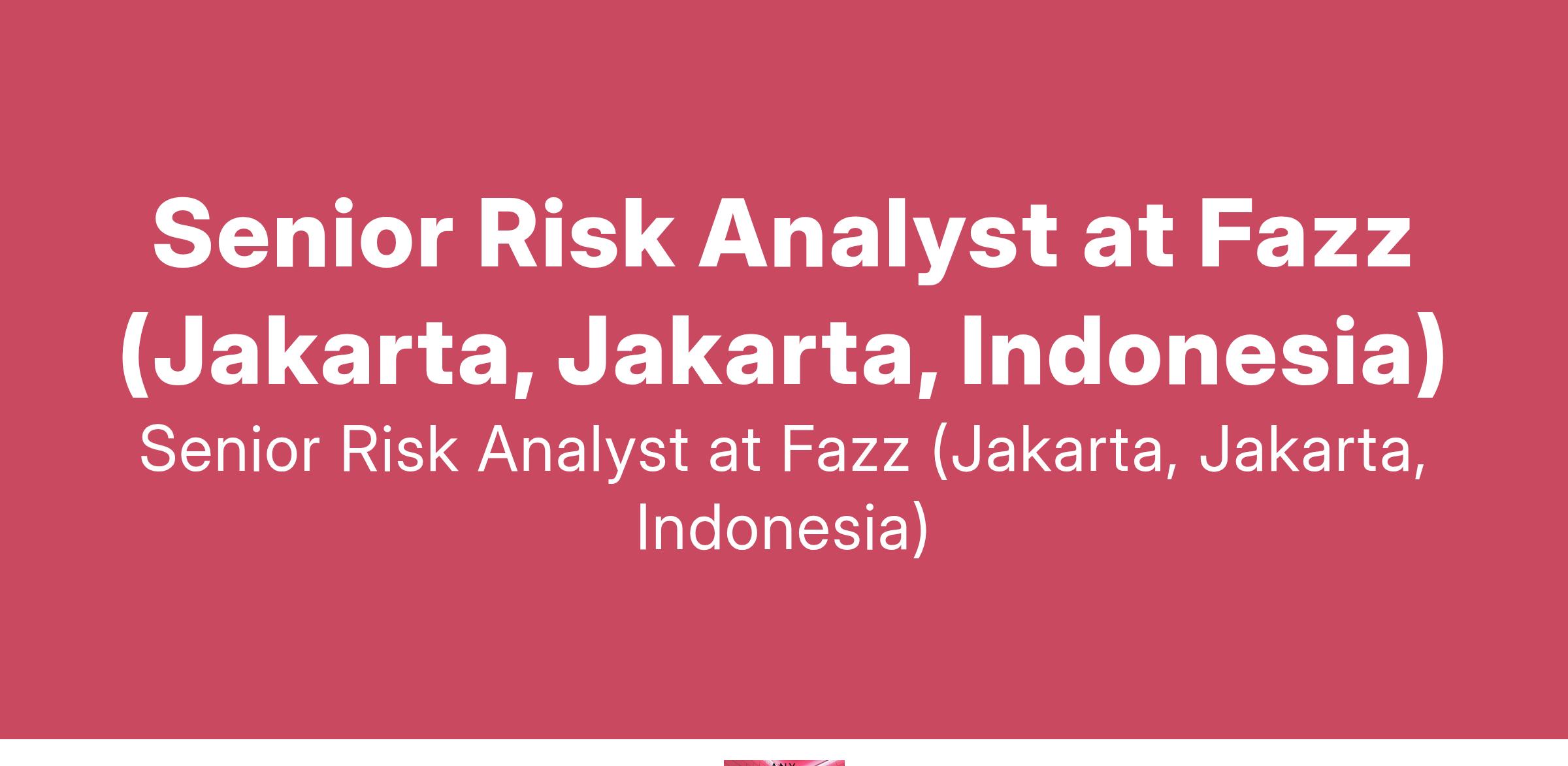 Senior Risk Analyst at Fazz (Jakarta, Jakarta, Indonesia)