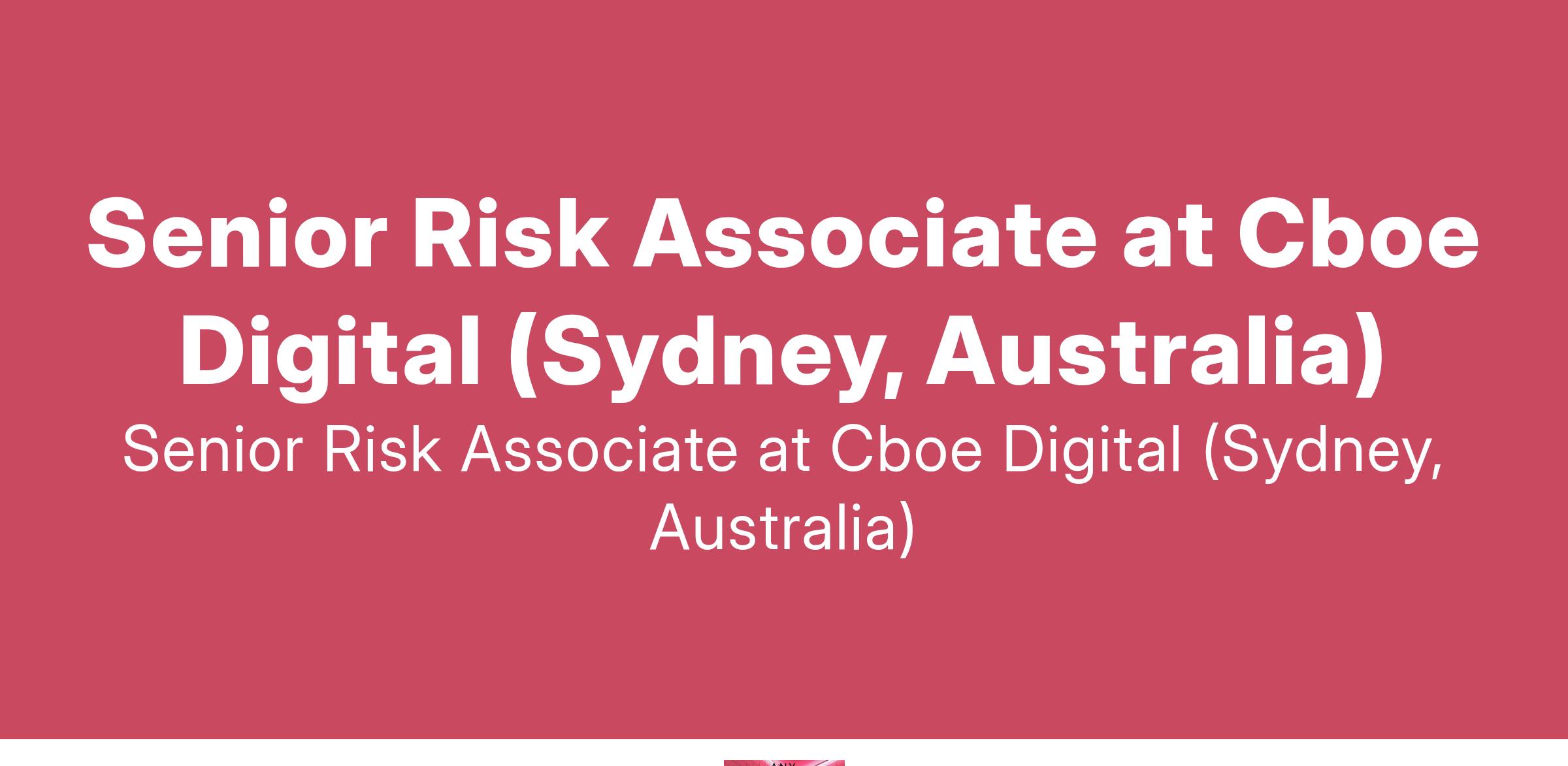 Senior Risk Associate at Cboe Digital (Sydney, Australia)