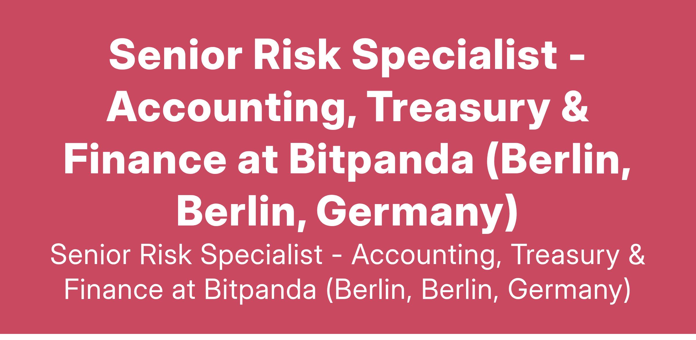 Senior Risk Specialist - Accounting, Treasury & Finance at Bitpanda (Berlin, Berlin, Germany)