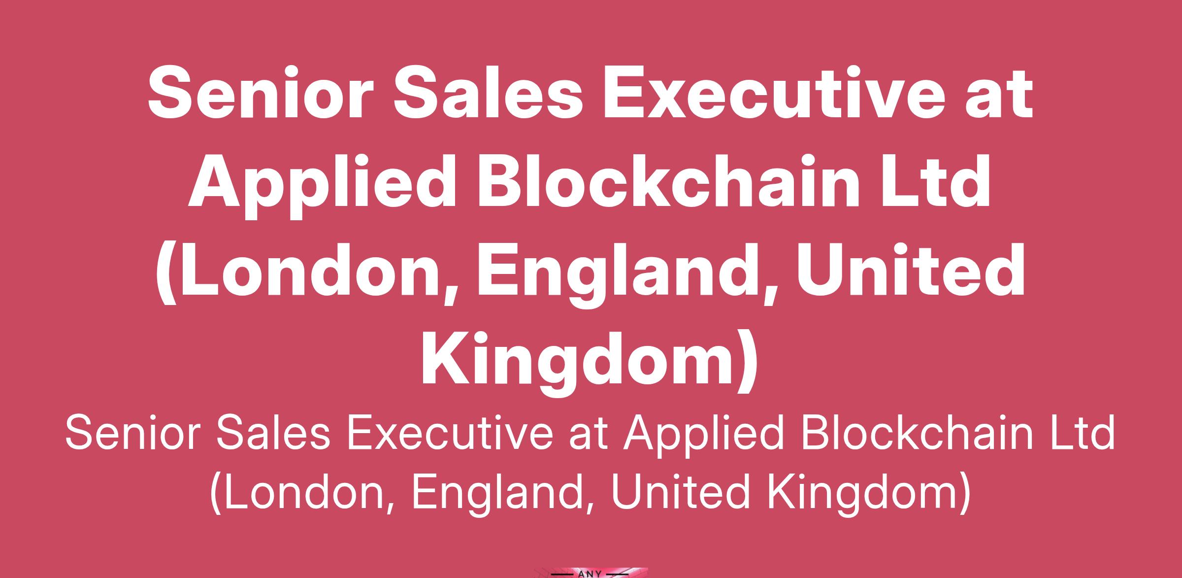 Senior Sales Executive at Applied Blockchain Ltd (London, England, United Kingdom)