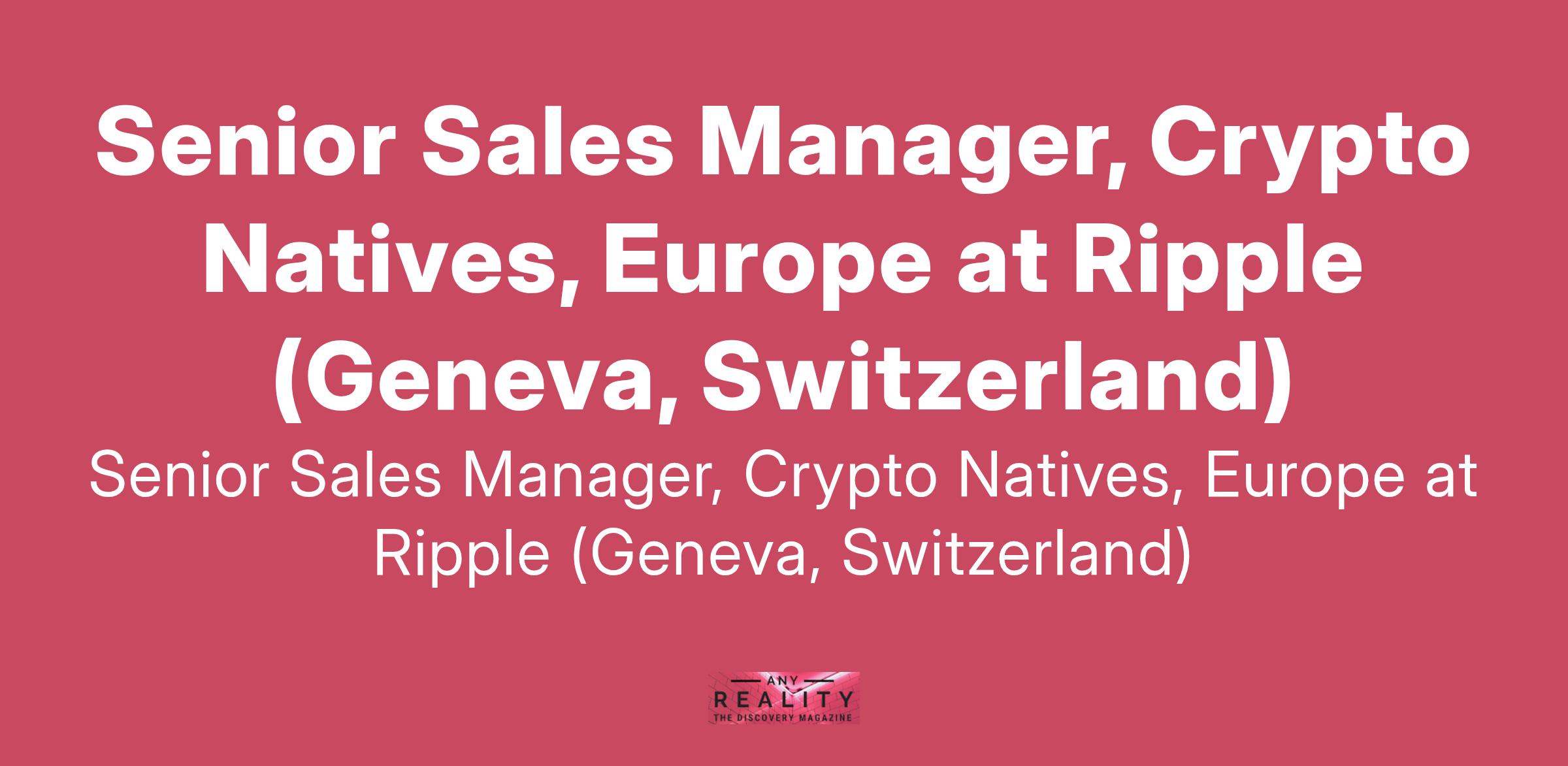 Senior Sales Manager, Crypto Natives, Europe at Ripple (Geneva, Switzerland)