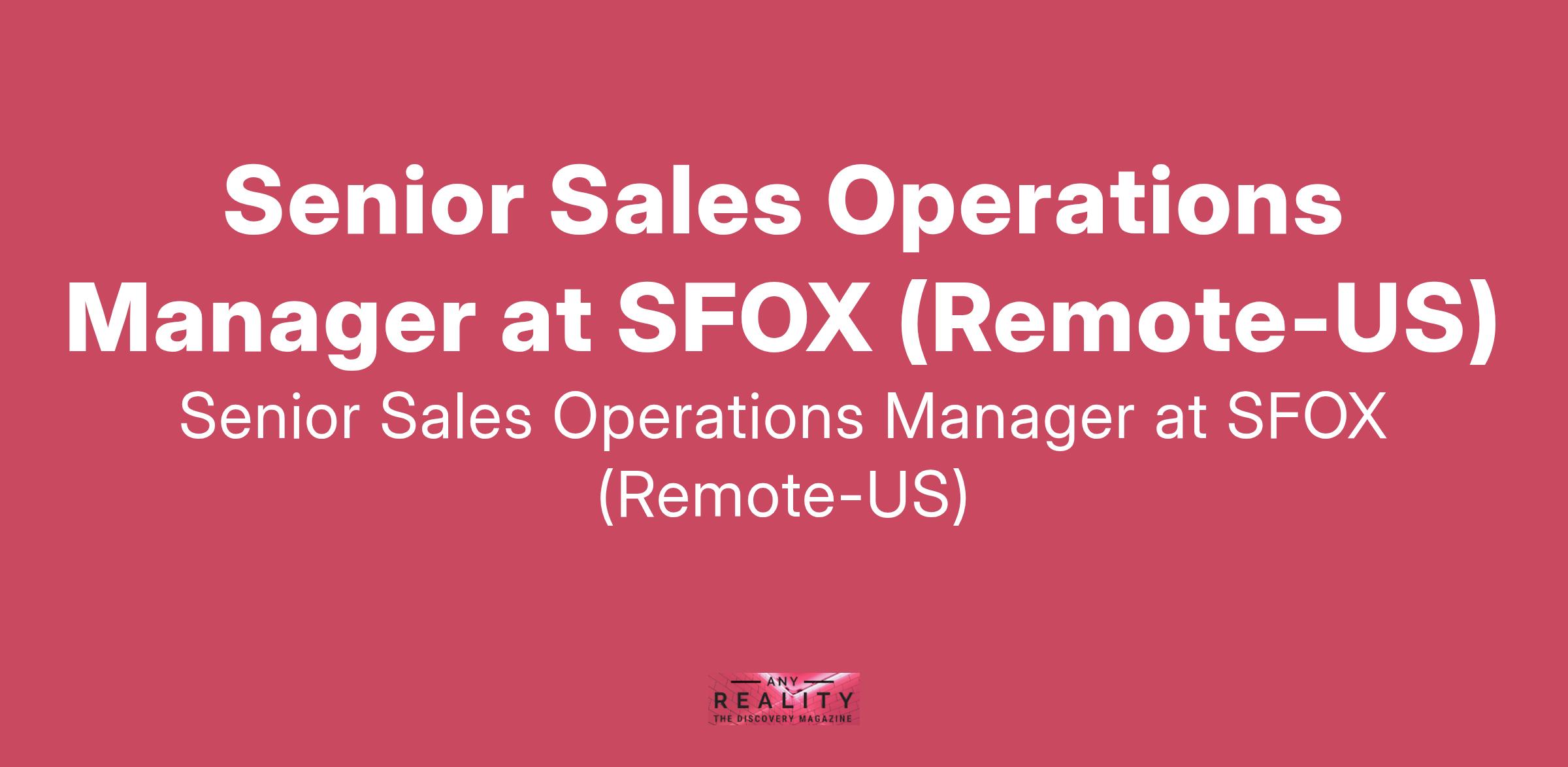 Senior Sales Operations Manager at SFOX (Remote-US)
