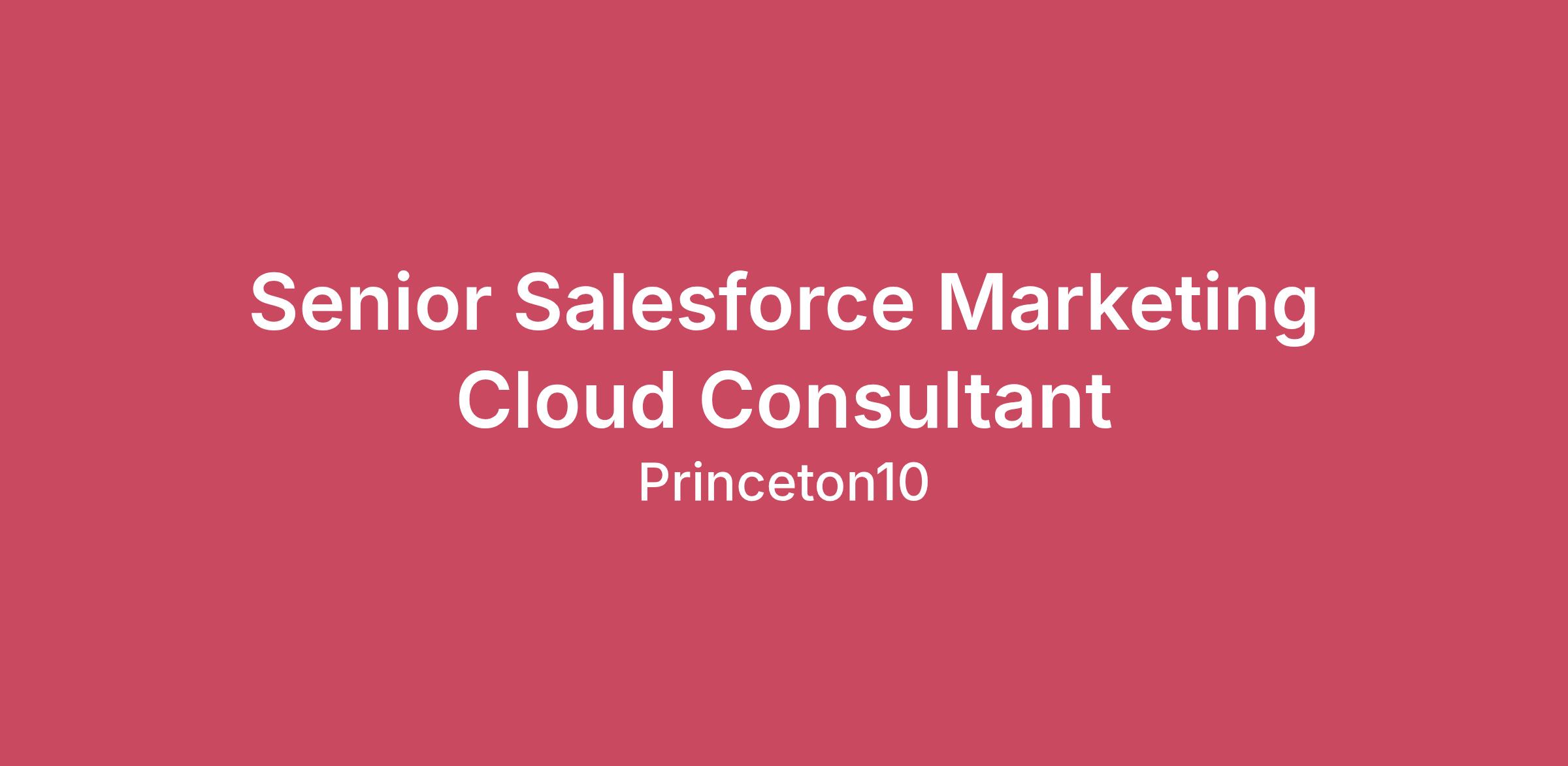 We are seeking a Senior Salesforce Marketing Cloud Consultant to lead the design, implementation, and optimization of Marketing Cloud solutions for a key client engagement. As the first role of its kind within P10, this position will play a foundational role in shaping our Salesforce Marketing Cloud capability, establishing best practices, and delivering high-impact, data-driven marketing solutions. The ideal candidate brings deep technical and strategic expertise across the Salesforce Marketing Cloud ecosystem, with a strong preference for experience in the health and pharmaceutical sectors, where compliance, personalization, and customer engagement are critical. You will report to the Managing Partner, Solutions \nResponsibilities: Lead end-to-end Salesforce Marketing Cloud implementations, including architecture, solution design, and deployment Act as the primary subject matter expert for Marketing Cloud across client engagements and internal initiatives Design and build complex, scalable customer journeys using Journey Builder, Automation Studio, and Contact Builder Develop and optimize multi-channel campaigns (email, SMS, push, etc.) with a focus on personalization and performance Collaborate with stakeholders to translate business and marketing requirements into technical solutions Establish data models, segmentation strategies, and integrations with CRM and external data sources Ensure compliance with data privacy regulations and industry standards, particularly within health/pharma contexts Provide strategic guidance on marketing technology, campaign optimization, and customer engagement best practices Troubleshoot technical issues and continuously improve platform performance and campaign effectiveness Requirements: 5–8+ years of experience working with Salesforce Marketing Cloud in a consulting or client-facing role, with experience leading implementations and managing stakeholder relationships Proven expertise across core Marketing Cloud modules (Email Studio, Journey Builder, Automation Studio, Contact Builder) Salesforce Marketing Cloud Engagement Consultant certification Strong understanding of data architecture, segmentation, and integrations (APIs, SQL, data extensions) Demonstrated ability to translate business needs into scalable technical solutions Experience in healthcare, life sciences, or pharmaceutical industries strongly preferred Familiarity with compliance frameworks (e.g., HIPAA, GDPR, CASL) is highly desirable Strong communication skills with the ability to influence both technical and non-technical stakeholders Self-starter mindset with the ability to operate in a new, evolving capability within a growing organization \n$11,000 - $155,000 a yearWe provide base salary, bonus, health benefits coverage plus 401k match for all our employees. \n Interested in working with us? Apply online today. Not an agency* The layer-laden teams. The prehistoric processes. The impersonal, ego-driven dog-and-pony shows. Take what you think you know about agencies and burn it. P10 was born of the idea that if something isn’t working—or could work better—change it. And that’s exactly what we did. We know that what we’re not makes us who we are. And we’re not just another agency. We are people driven by a palpable passion and purpose, felt by our clients from the very first conversation. P10 brings together a team of diverse, remote-only seasoned professionals to deliver exceptional value for our clients. Dare to do something different - join us.
