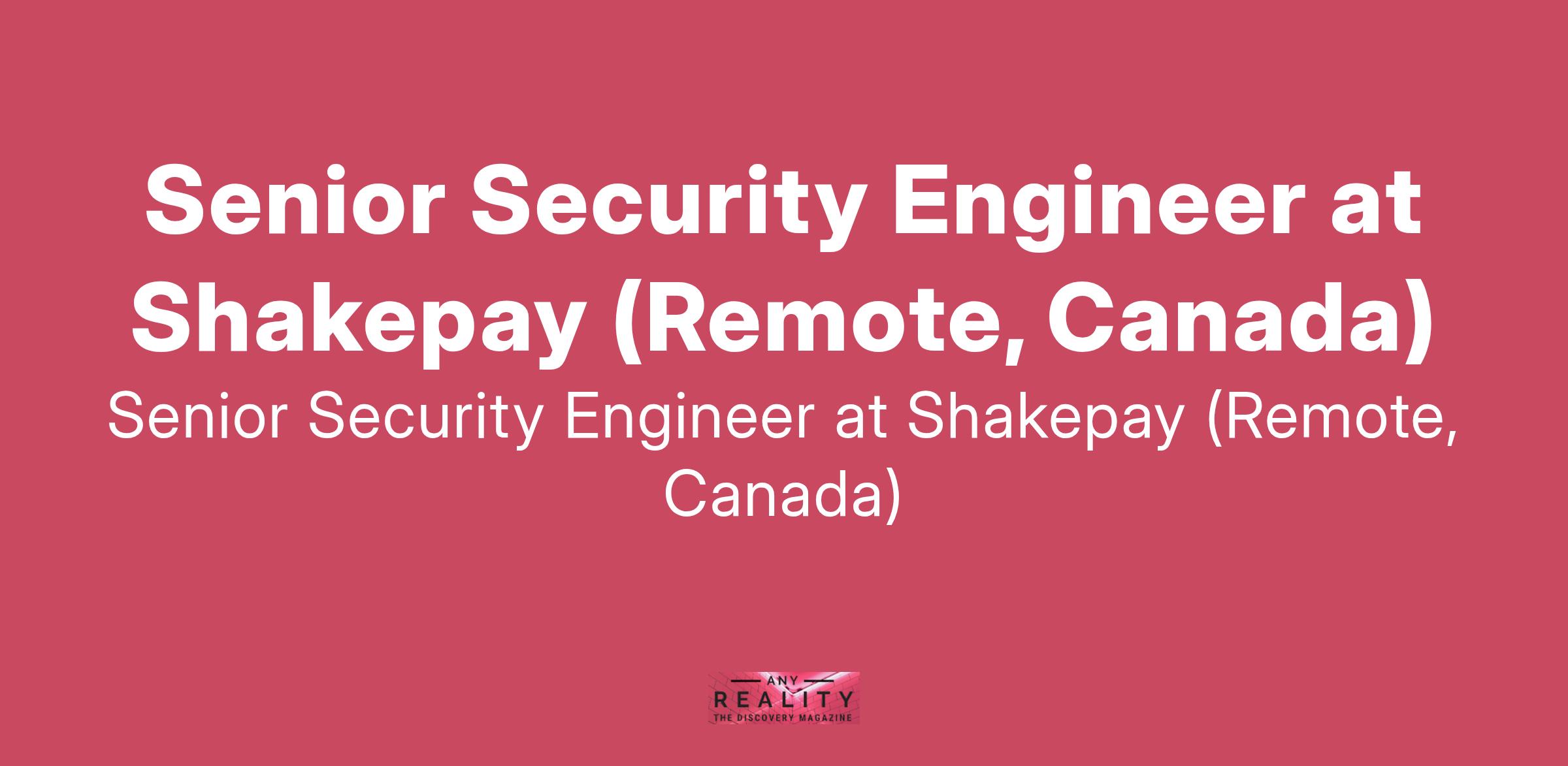 Senior Security Engineer at Shakepay (Remote, Canada)