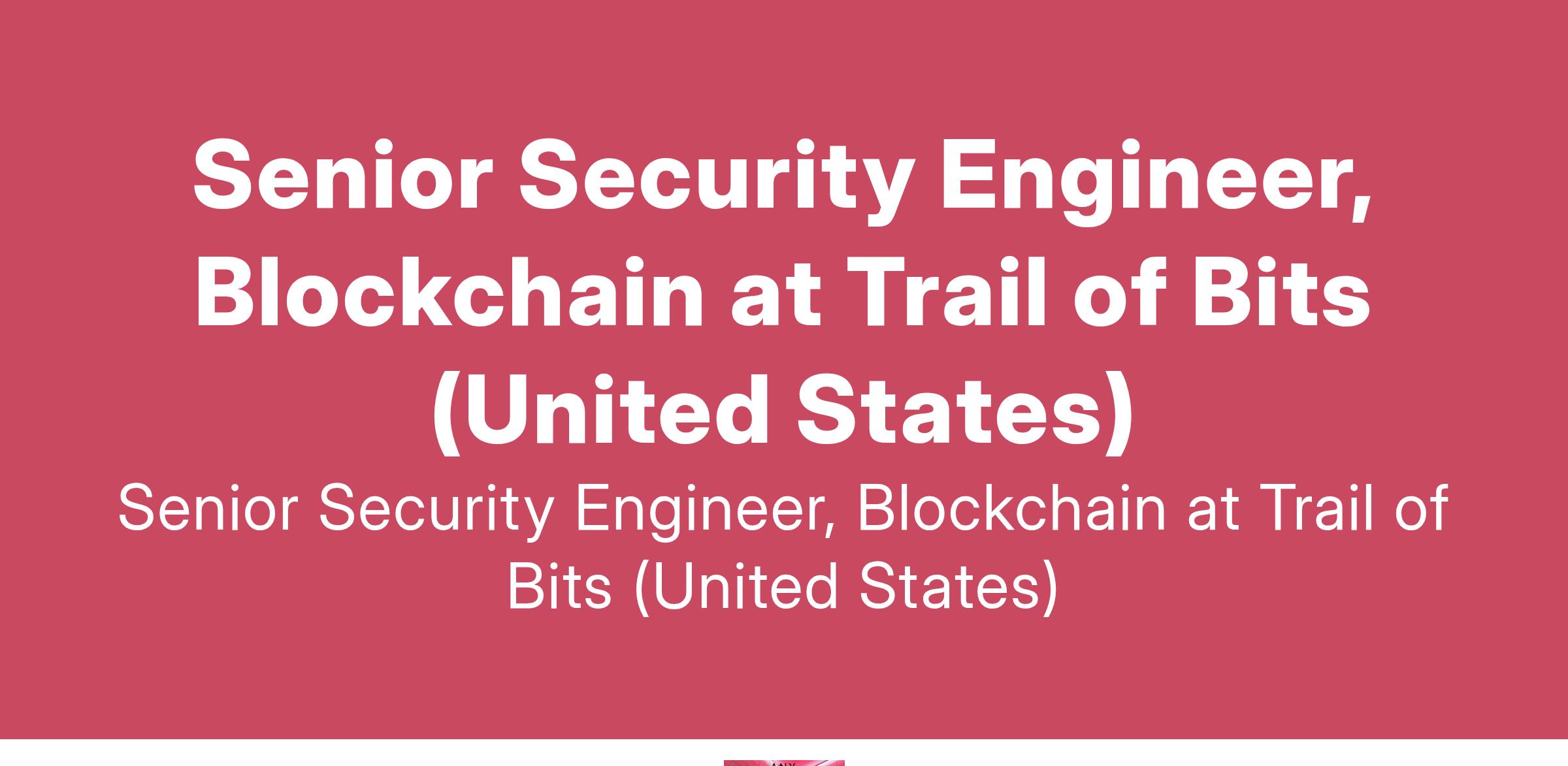 Senior Security Engineer, Blockchain at Trail of Bits (United States)