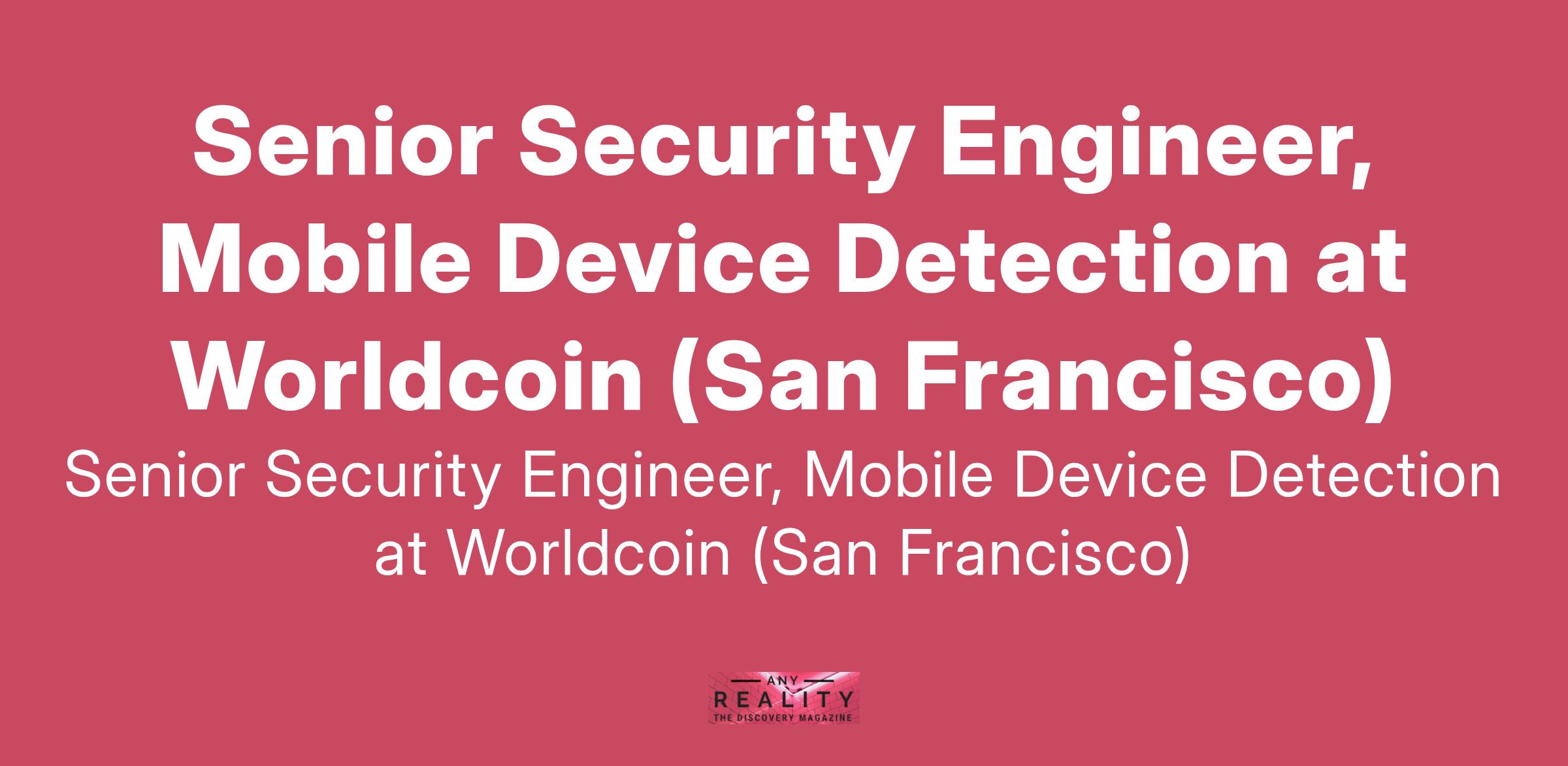 Senior Security Engineer, Mobile Device Detection at Worldcoin (San Francisco)