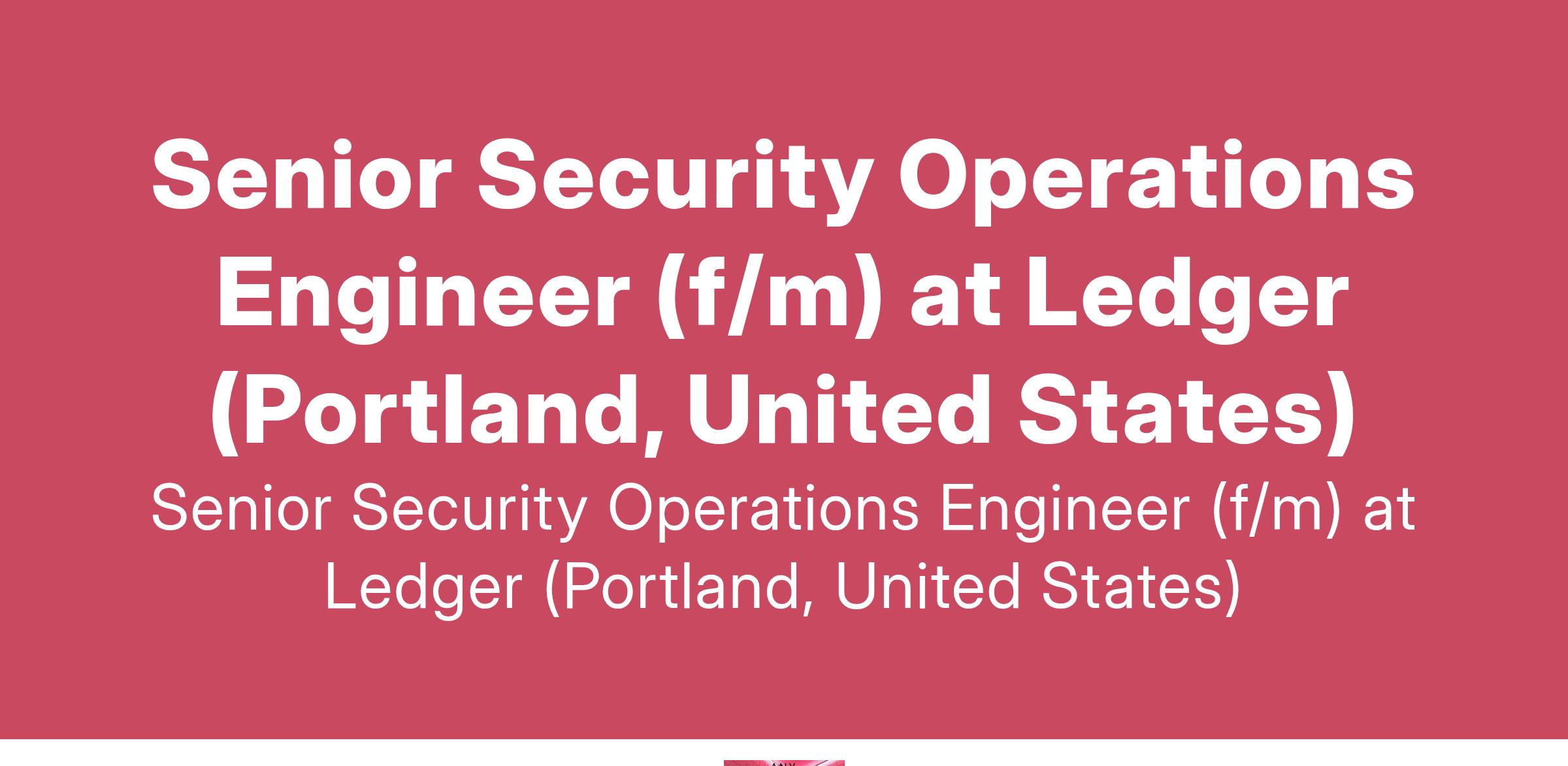 Senior Security Operations Engineer (f/m) at Ledger (Portland, United States)