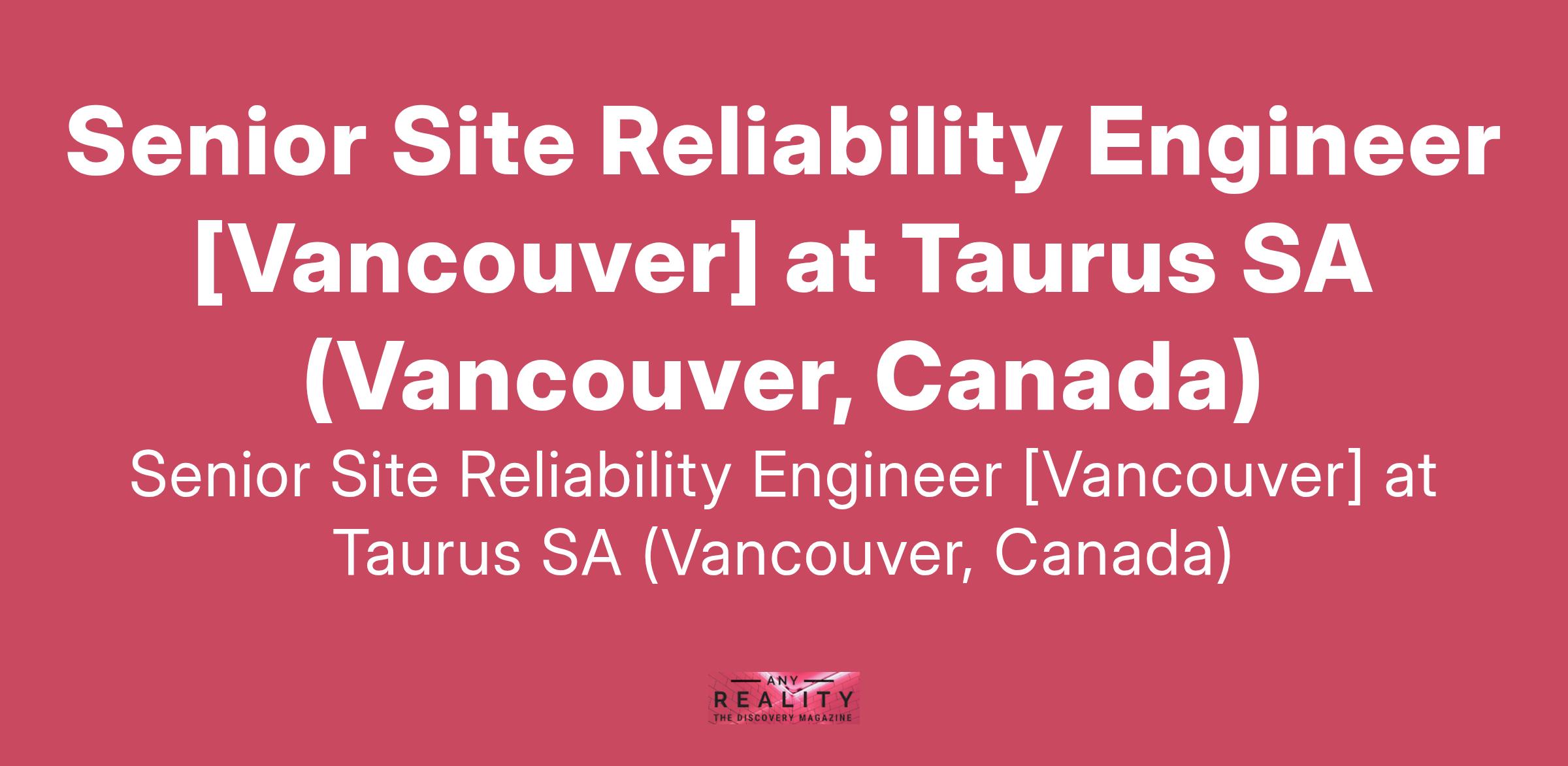 Senior Site Reliability Engineer [Vancouver] at Taurus SA (Vancouver, Canada)