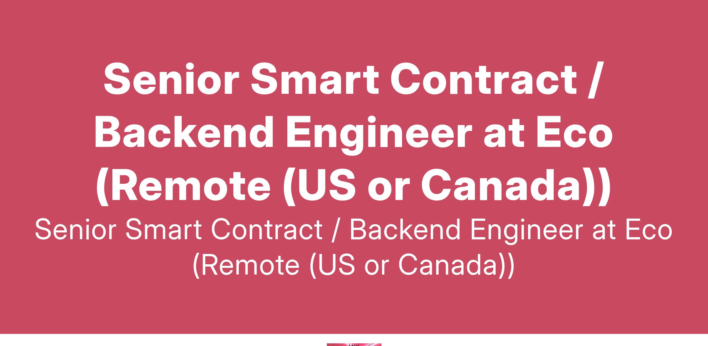 Senior Smart Contract / Backend Engineer at Eco (Remote (US or Canada))