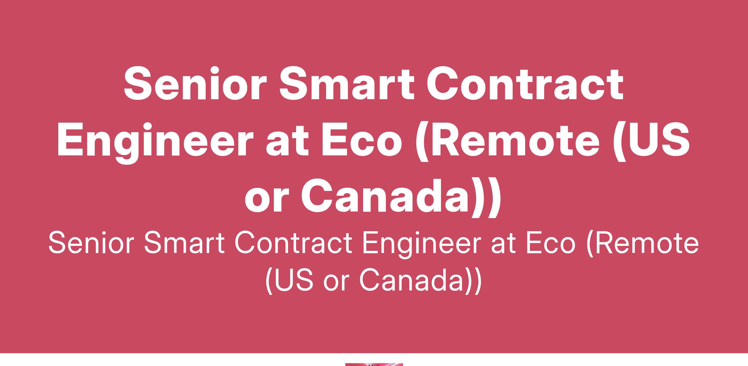 Senior Smart Contract Engineer at Eco (Remote (US or Canada))