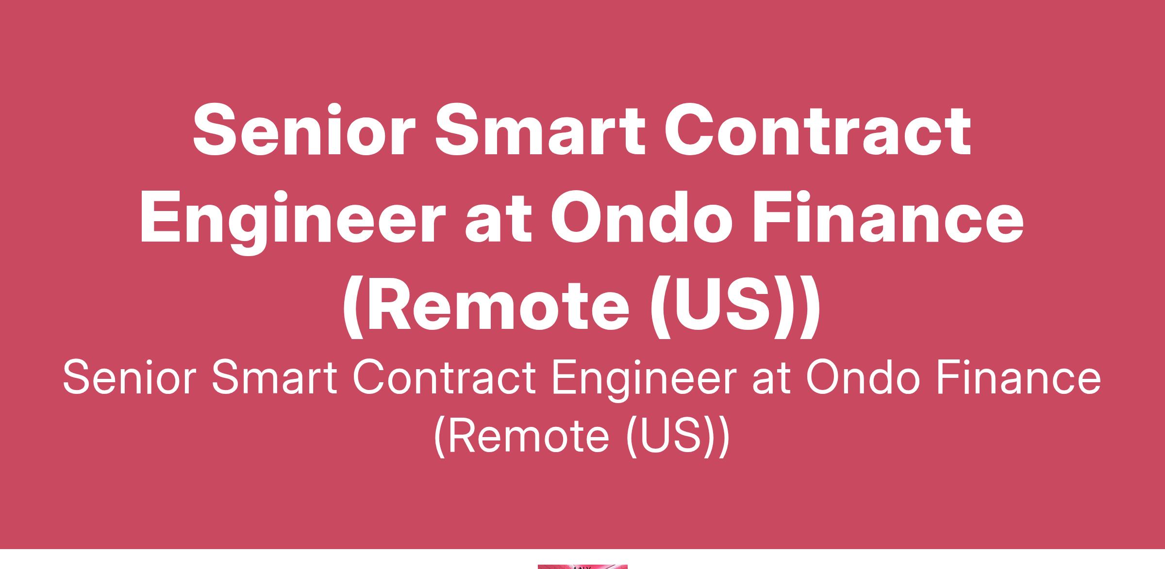 Senior Smart Contract Engineer at Ondo Finance (Remote (US))