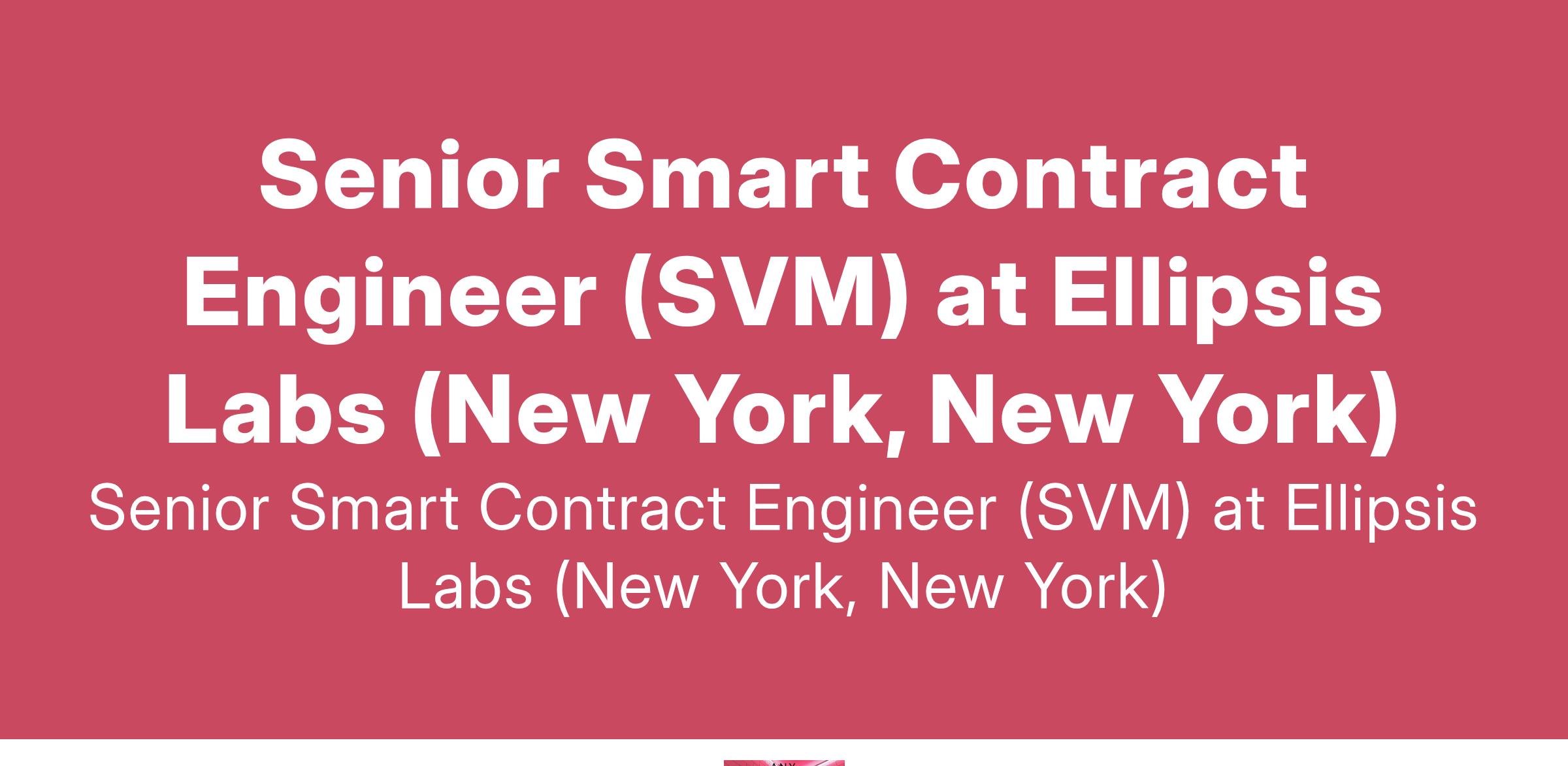 Senior Smart Contract Engineer (SVM) at Ellipsis Labs (New York, New York)