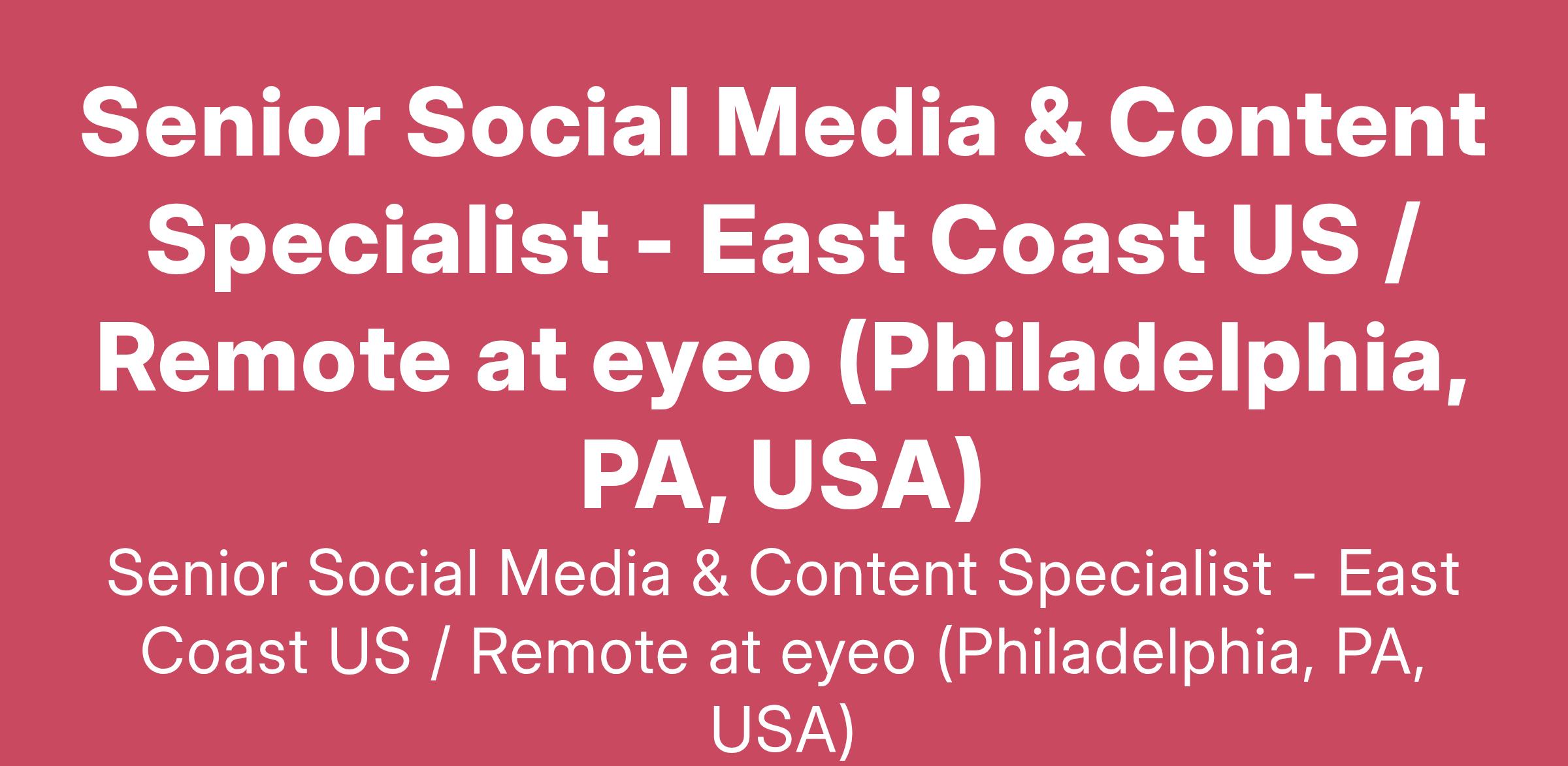 Senior Social Media & Content Specialist - East Coast US / Remote at eyeo (Philadelphia, PA, USA)