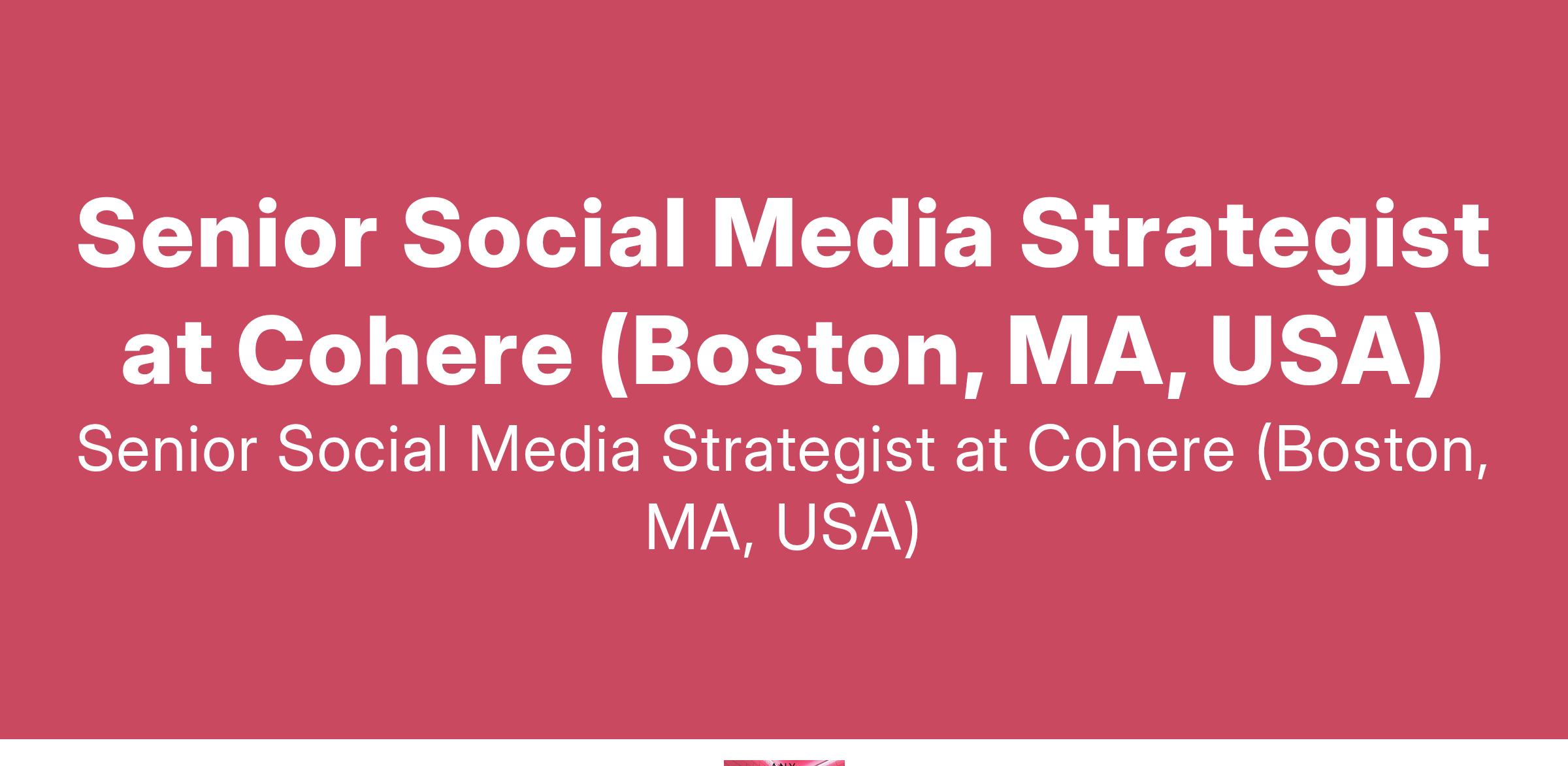 Senior Social Media Strategist at Cohere (Boston, MA, USA)