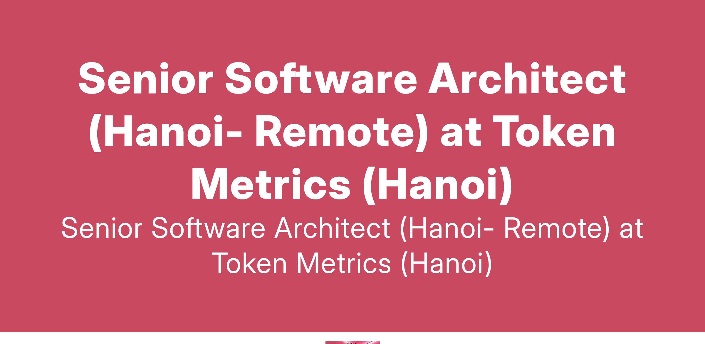 Senior Software Architect (Hanoi- Remote) at Token Metrics (Hanoi)