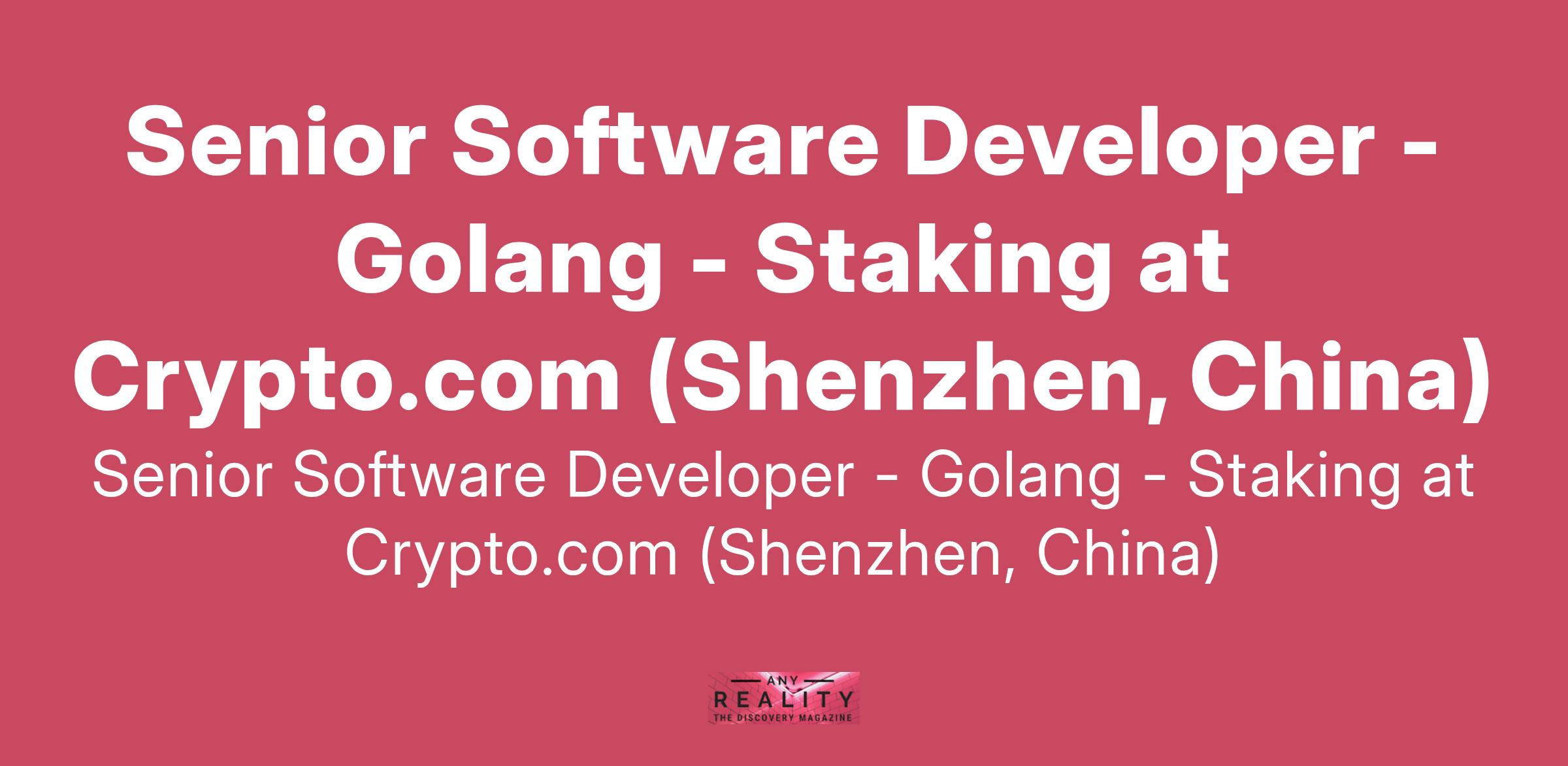 Senior Software Developer - Golang - Staking at Crypto.com (Shenzhen, China)
