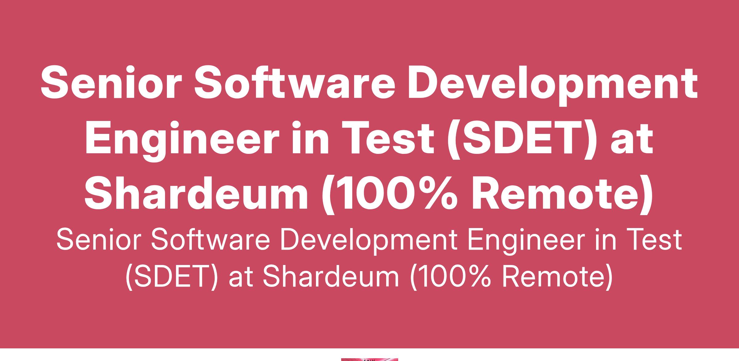 Senior Software Development Engineer in Test (SDET) at Shardeum (100% Remote)