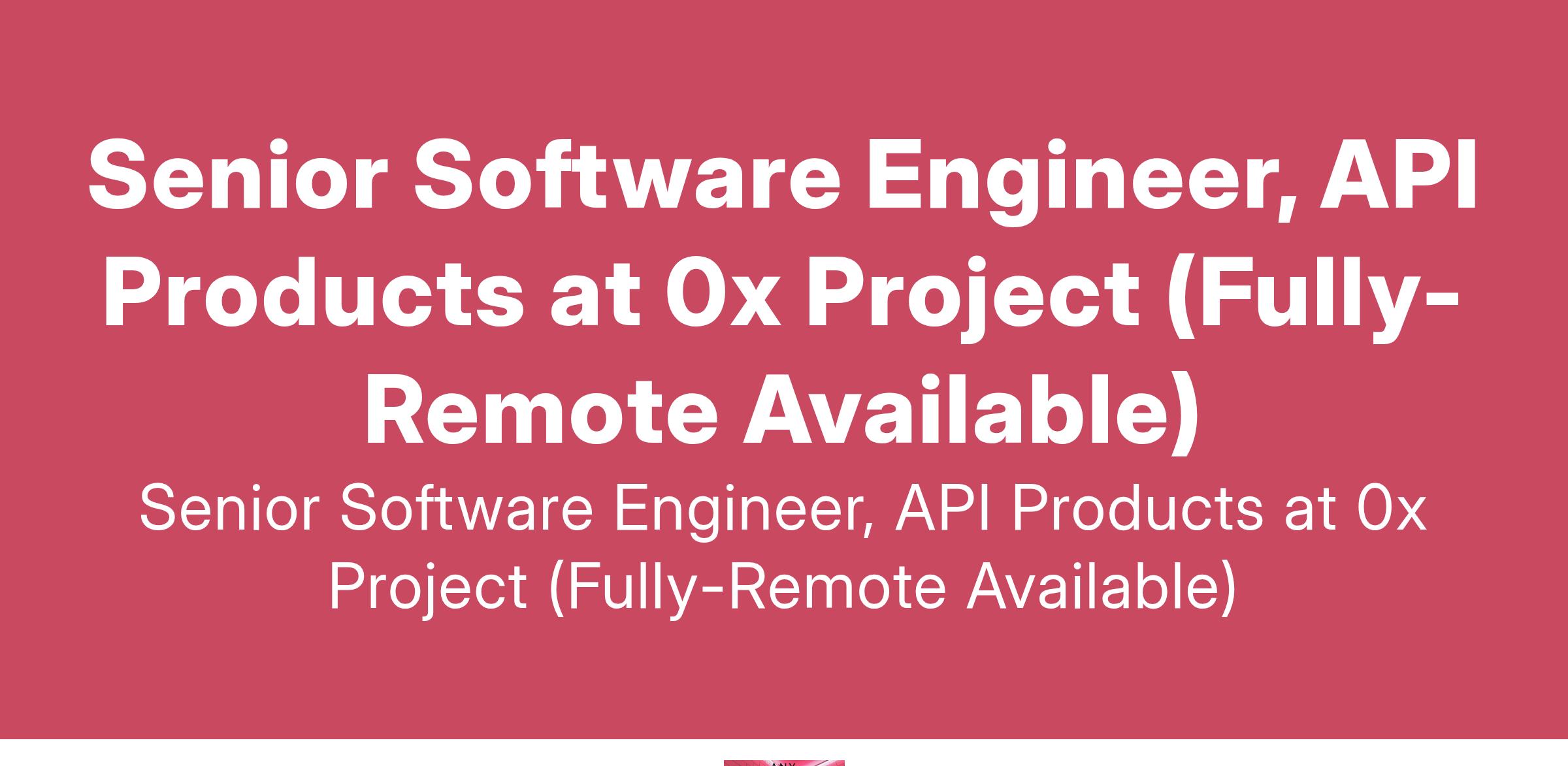 Senior Software Engineer, API Products at 0x Project (Fully-Remote Available)