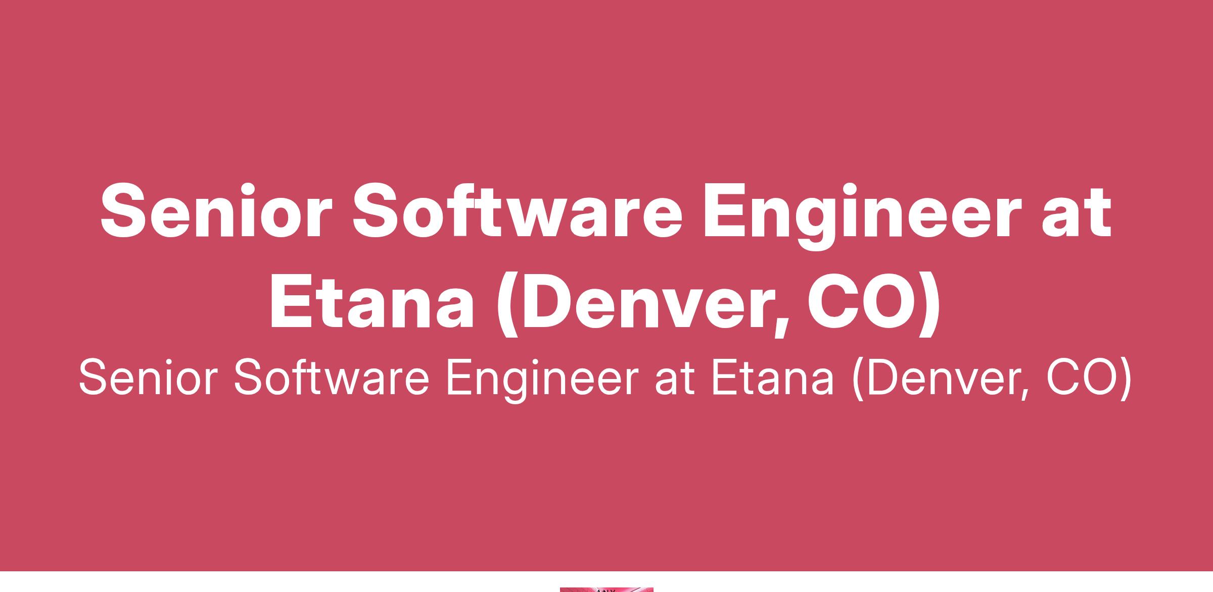 Senior Software Engineer at Etana (Denver, CO)