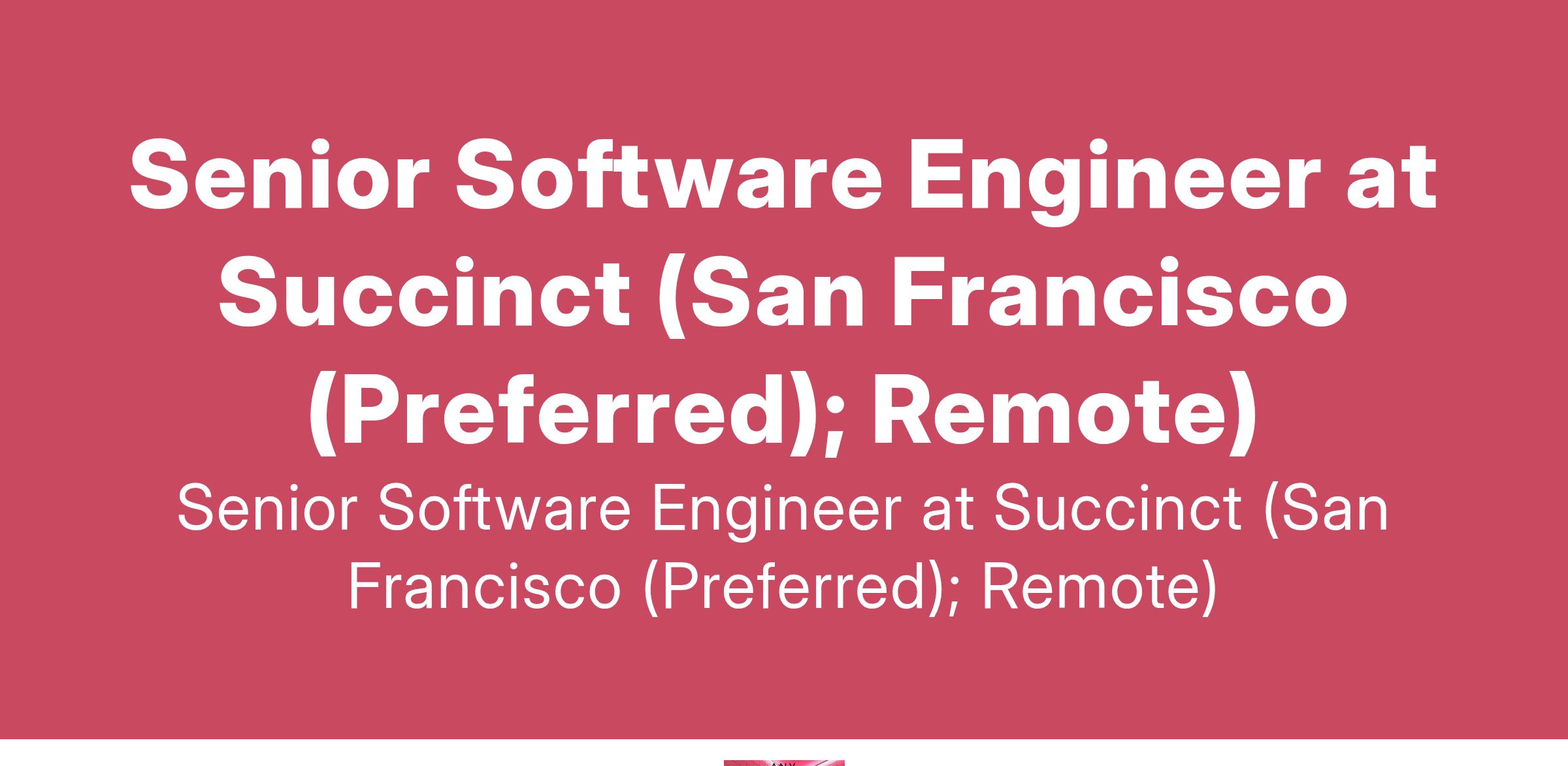Senior Software Engineer at Succinct (San Francisco (Preferred); Remote)